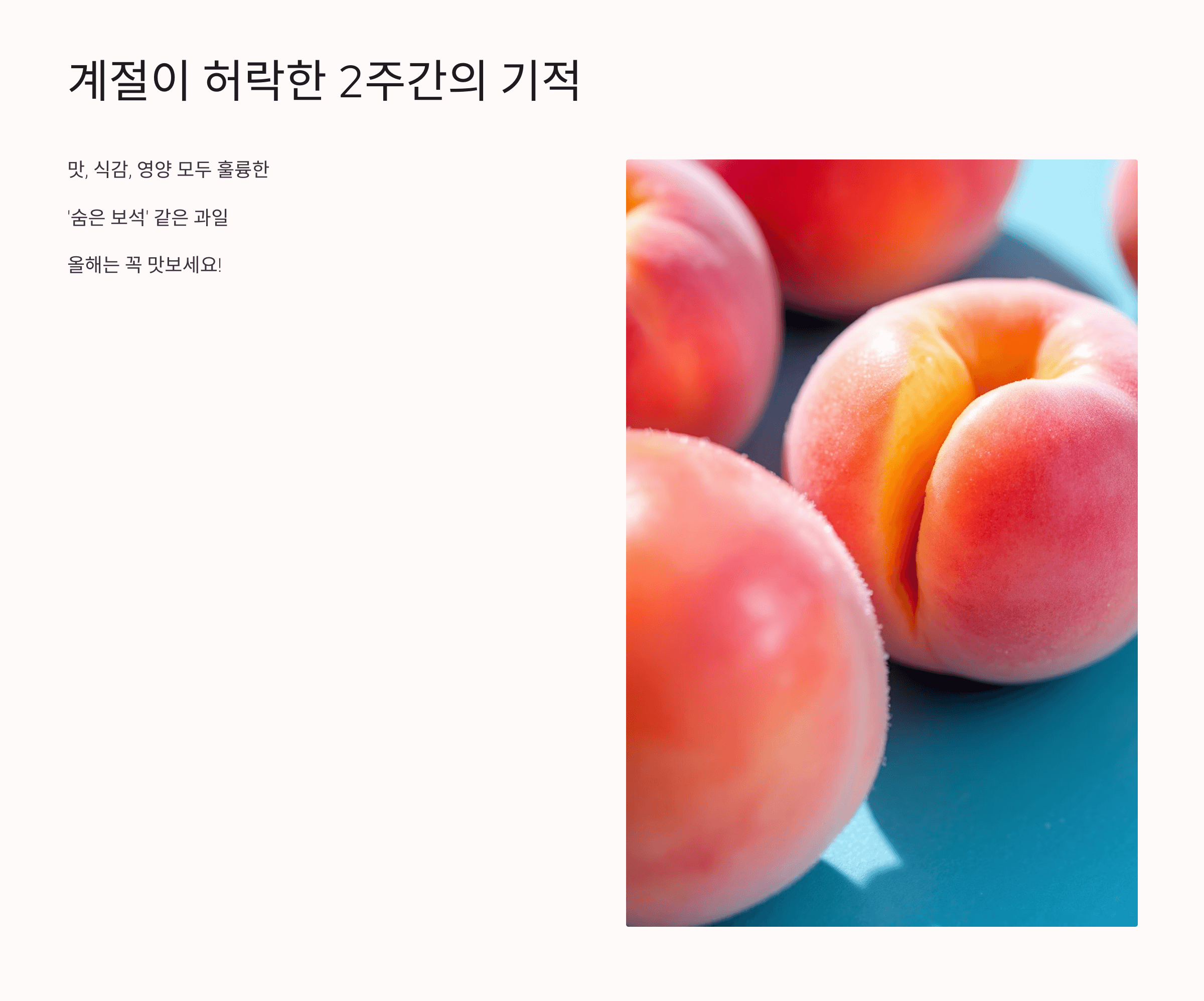 → 신비 복숭아의 제철은 6월 말~7월 초이며, 단 2주간만 수확 가능해요.