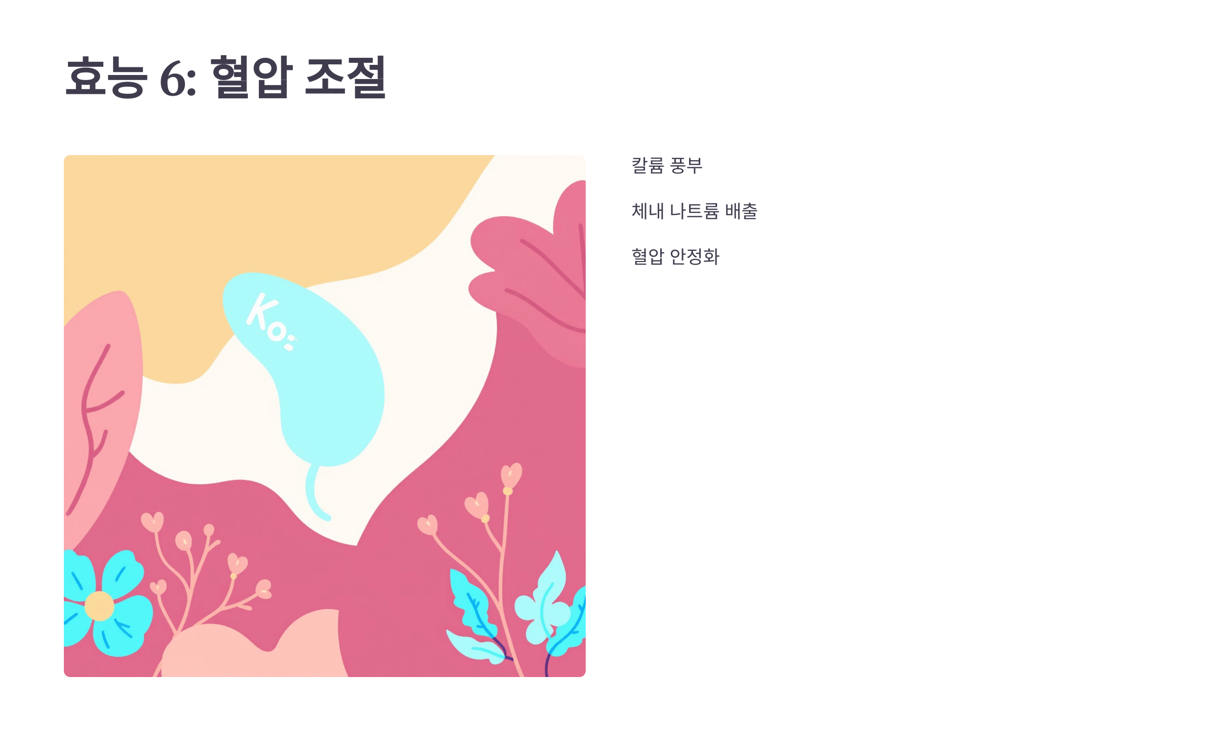 혈압을 안정화시키고, 혈관 건강을 지켜주는 데 도움돼요.