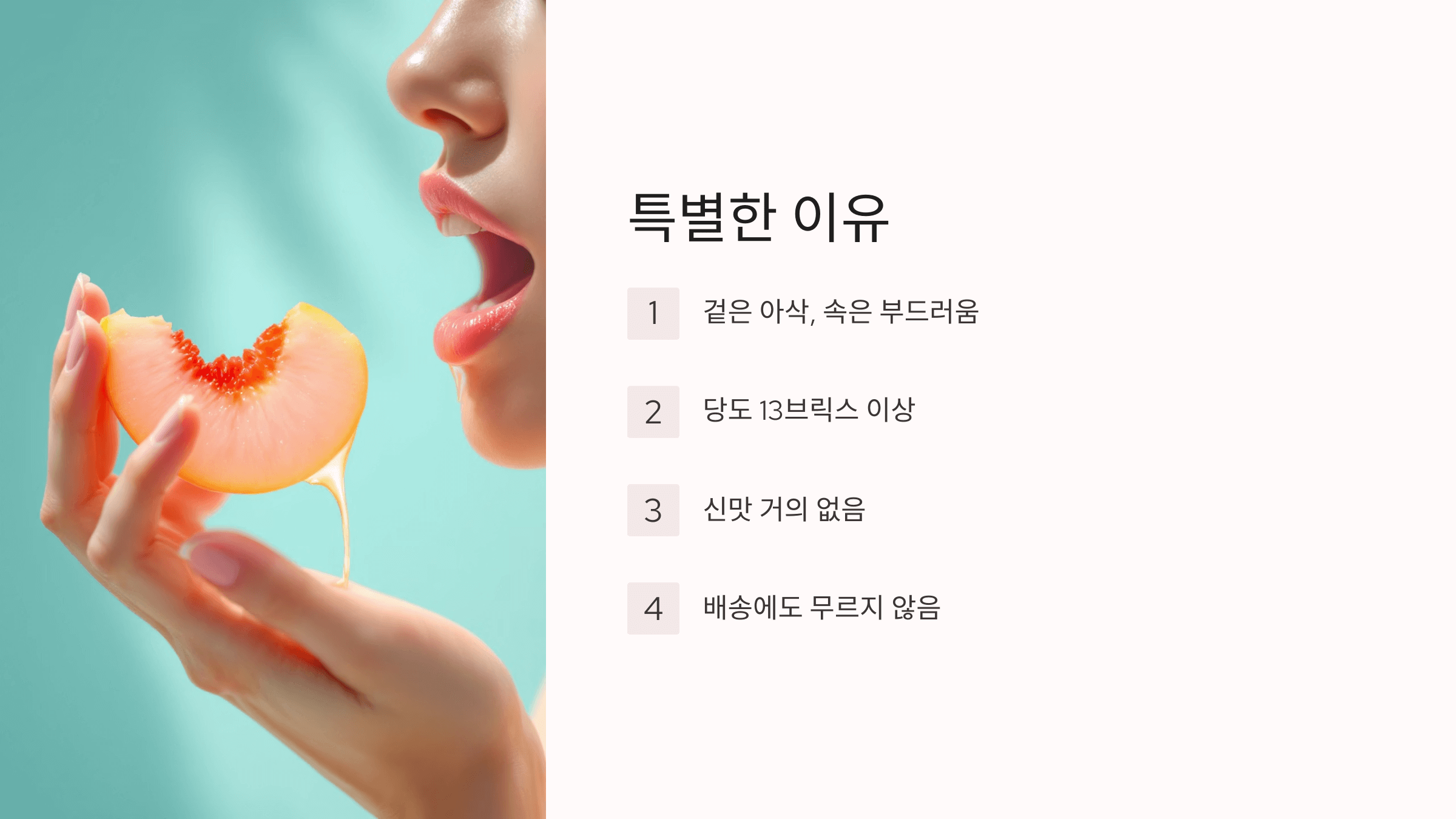 한입 베어 물면 겉은 천도의 아삭함, 속은 백도의 부드러움이 동시에 느껴지거든요.