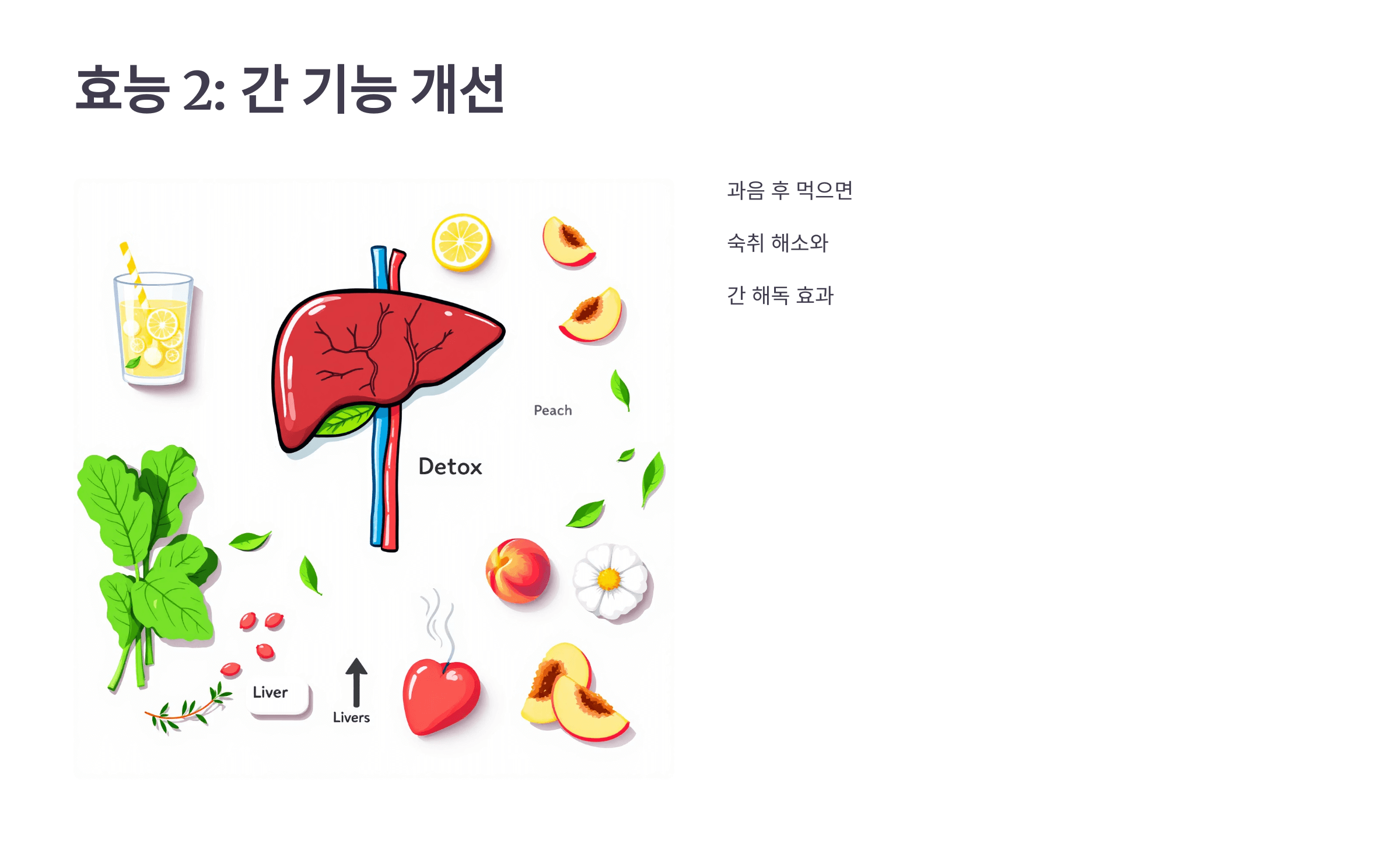 신비 복숭아는 간 해독 작용을 도와 숙취 해소에 효과적이에요.