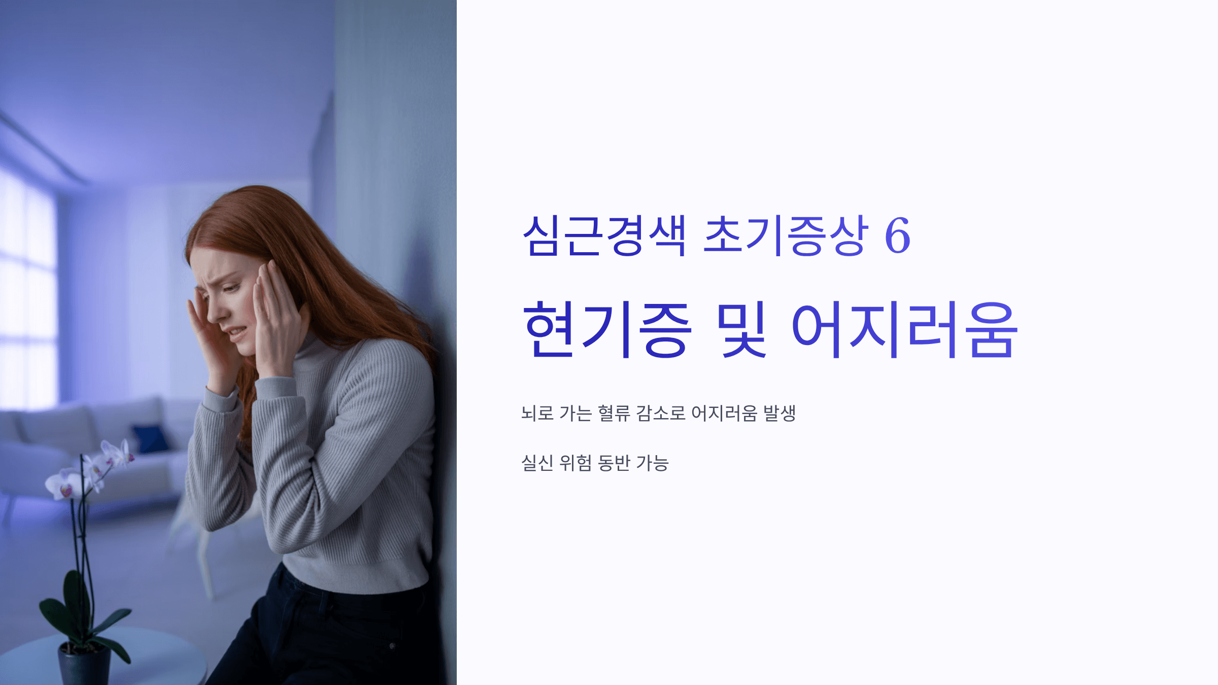 심근경색으로 인해 뇌로 가는 혈류가 감소하면 어지러움과 함께 실신 위험까지 동반될 수 있습니다.