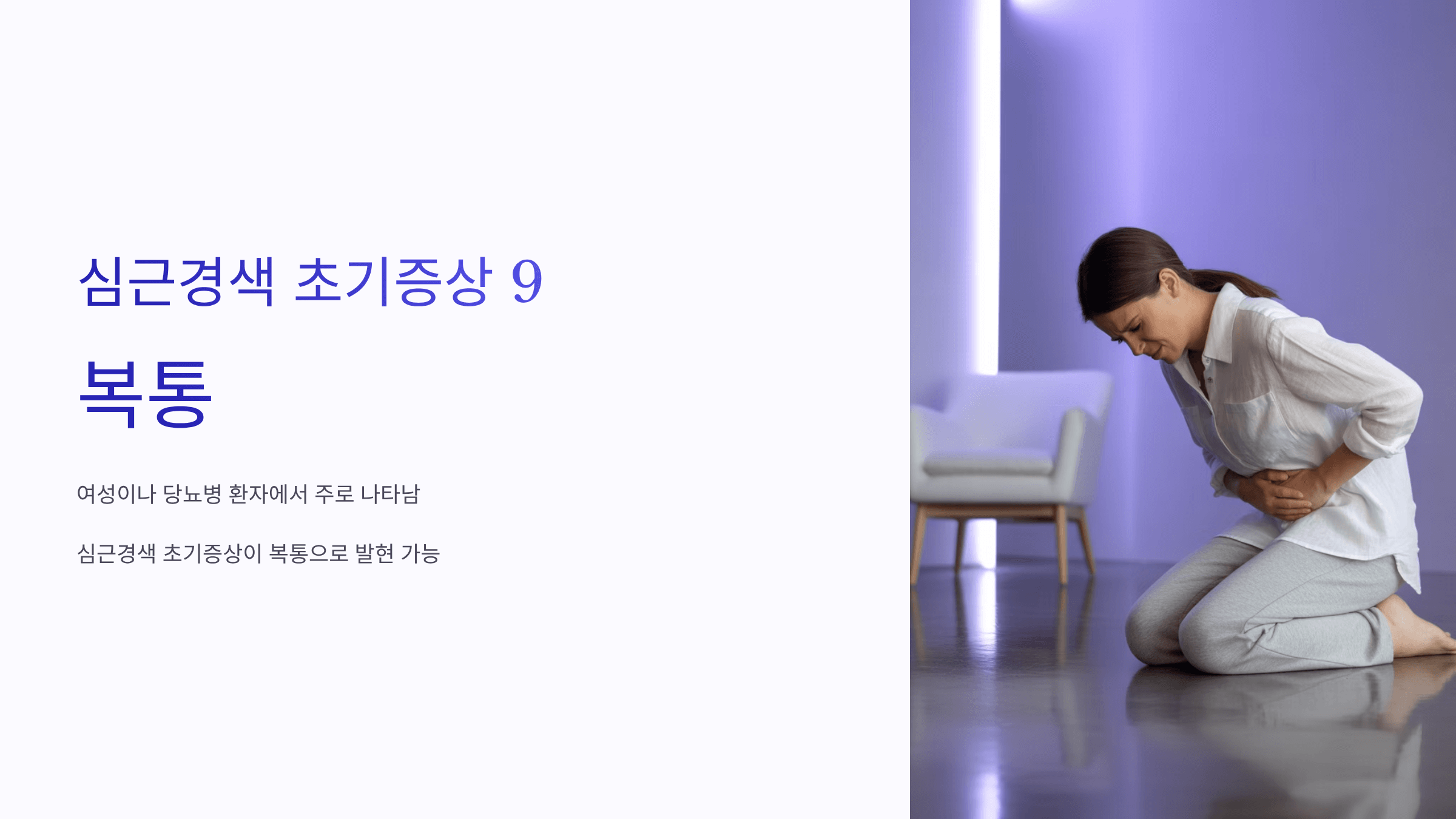 특히 여성이나 당뇨병 환자에서는 심근경색 초기증상이 복통으로 나타날 수 있습니다.