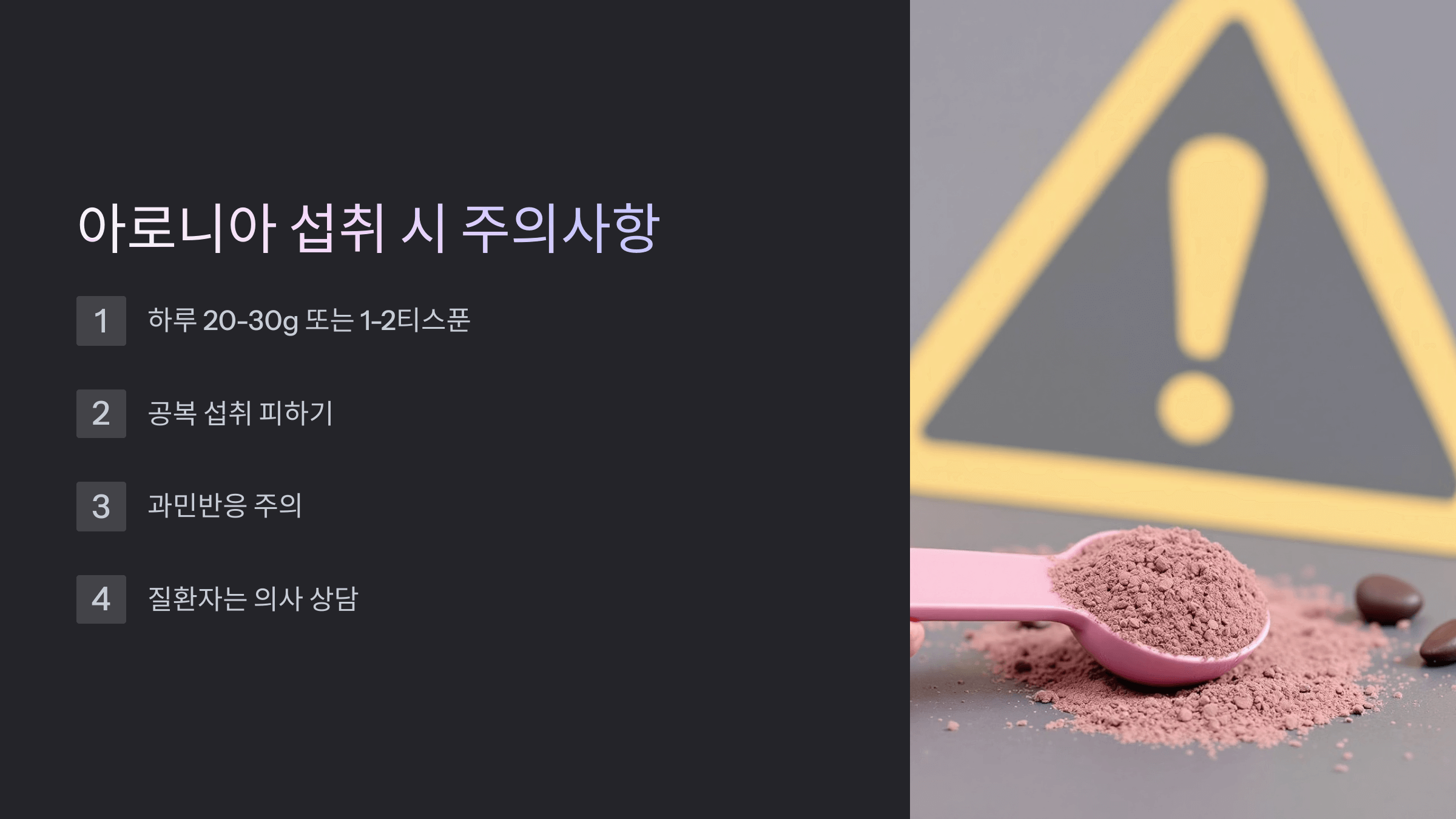 → 기본적인 섭취는 괜찮지만, 반드시 전문가와 상담하세요. - 아로니아즙과 분말 중 어떤 게 더 좋나요?