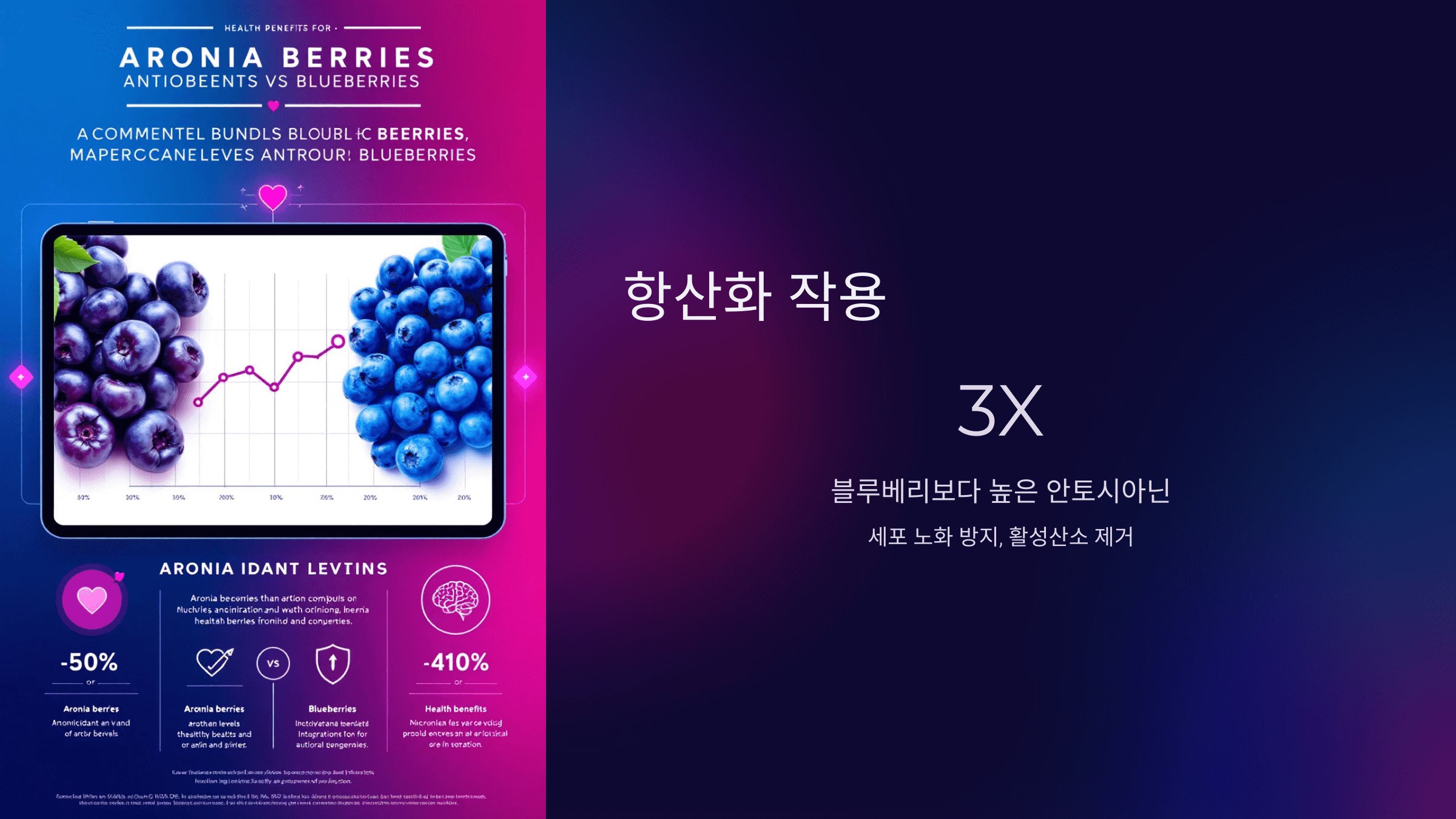 아로니아는 안토시아닌 함량이 블루베리보다 3배 이상 높아요!