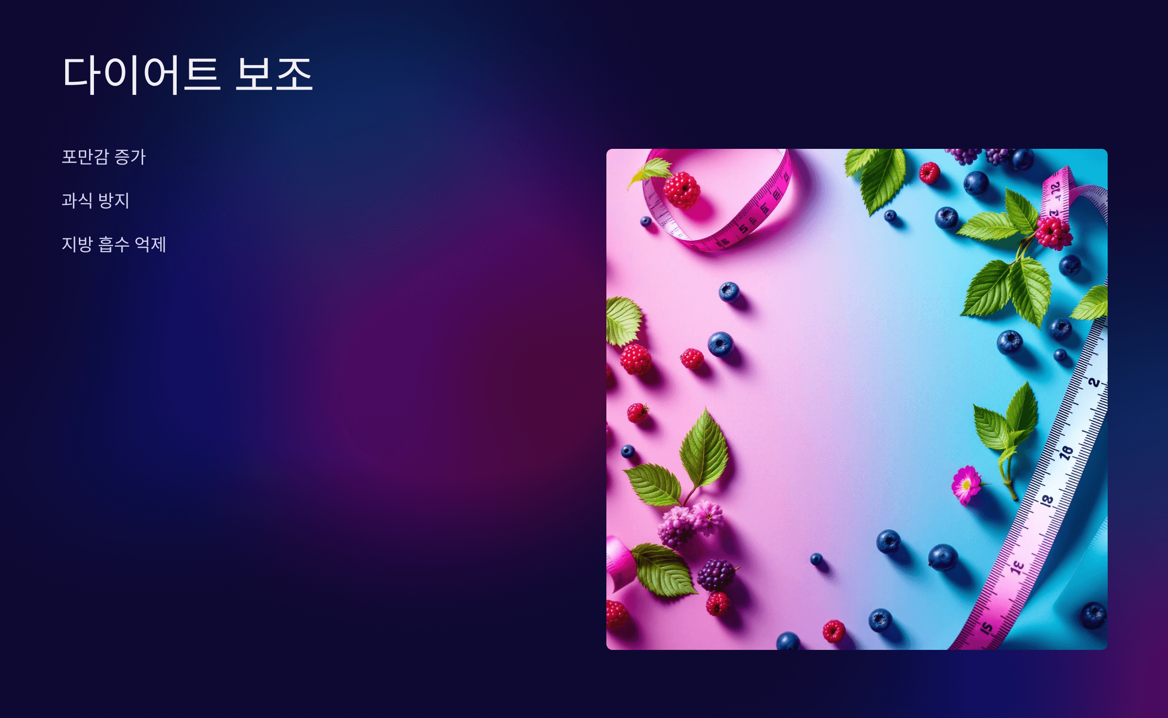 포만감을 높여 과식을 줄이고, 지방 흡수를 억제해 체중 조절에 도움을 줍니다.