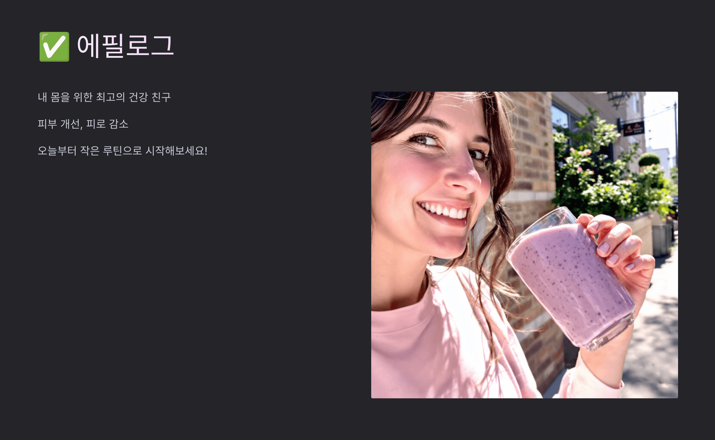 피부, 피로, 소화 모두 챙길 수 있는 완벽한 건강 음료가 됩니다.
