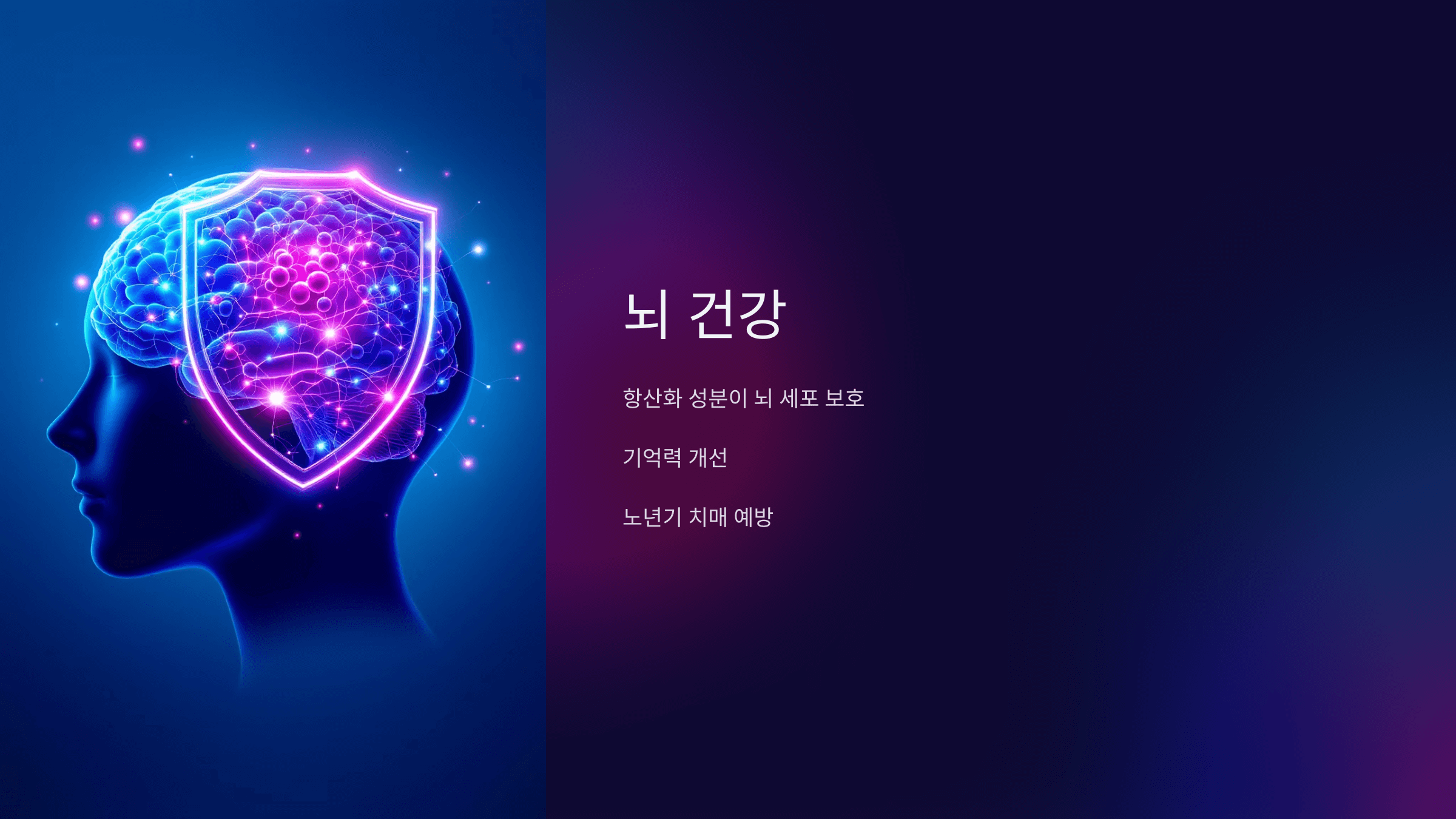 항산화 성분은 뇌 세포를 보호하고 기억력 개선에 도움됩니다.
