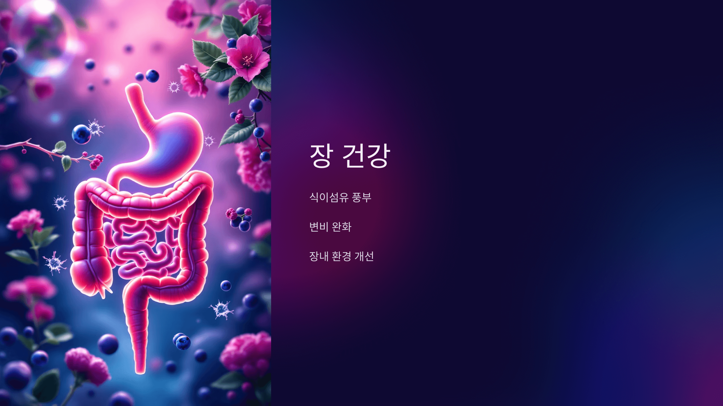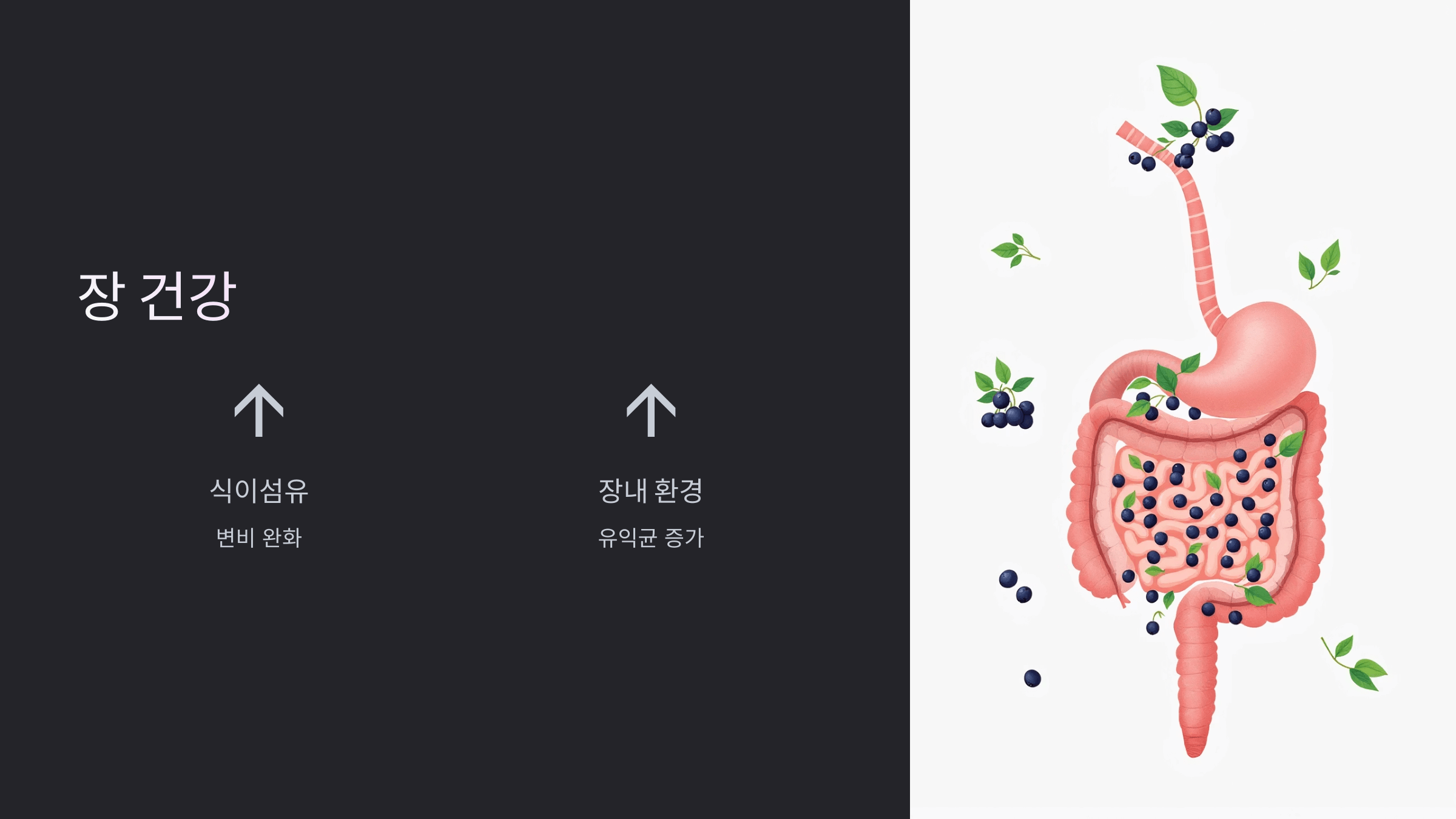 식이섬유가 풍부해 변비 완화, 장내 환경 개선에 효과적이에요.
