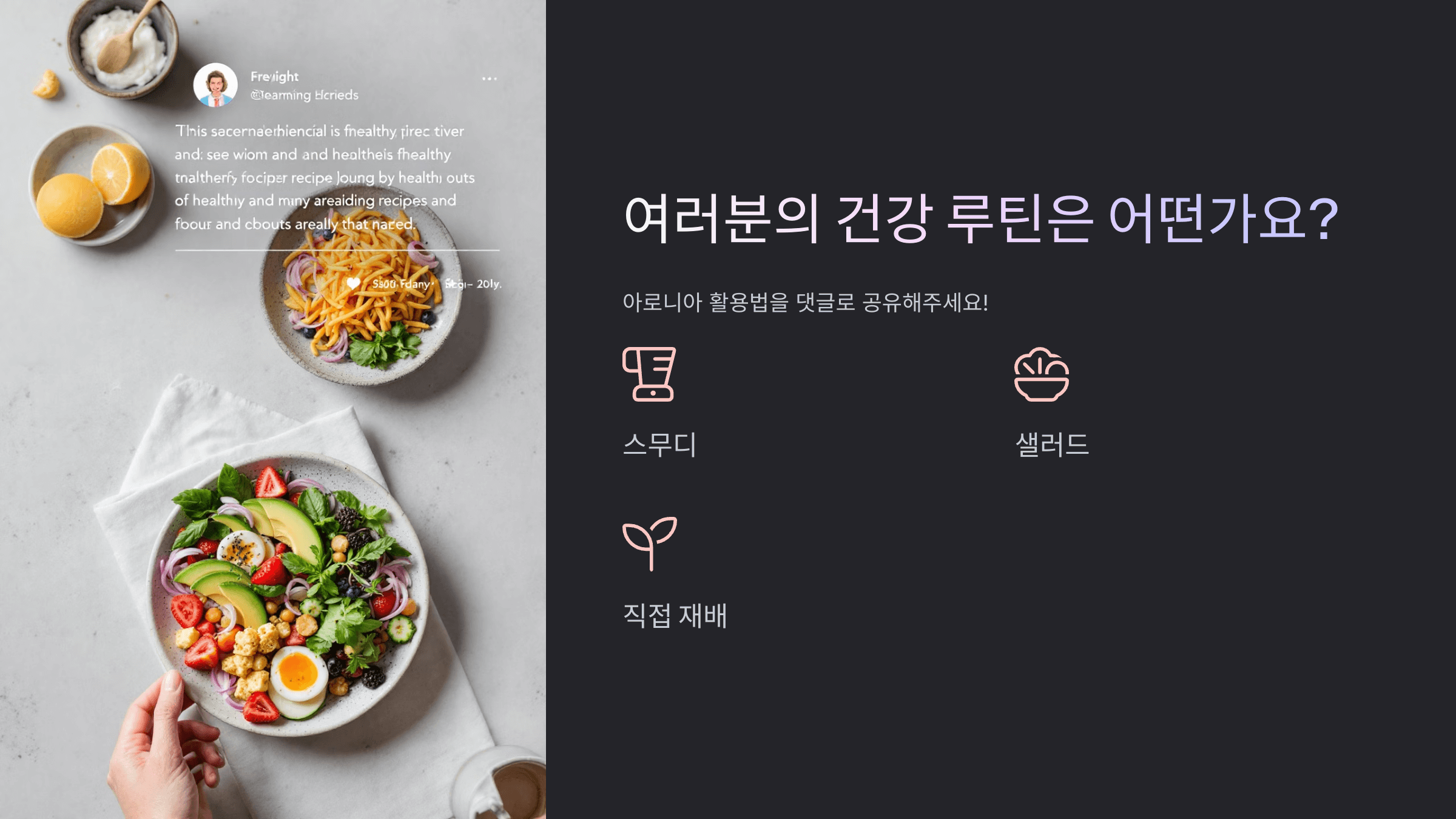 요거트, 스무디, 샐러드, 혹은 직접 재배한 경험도 환영이에요!