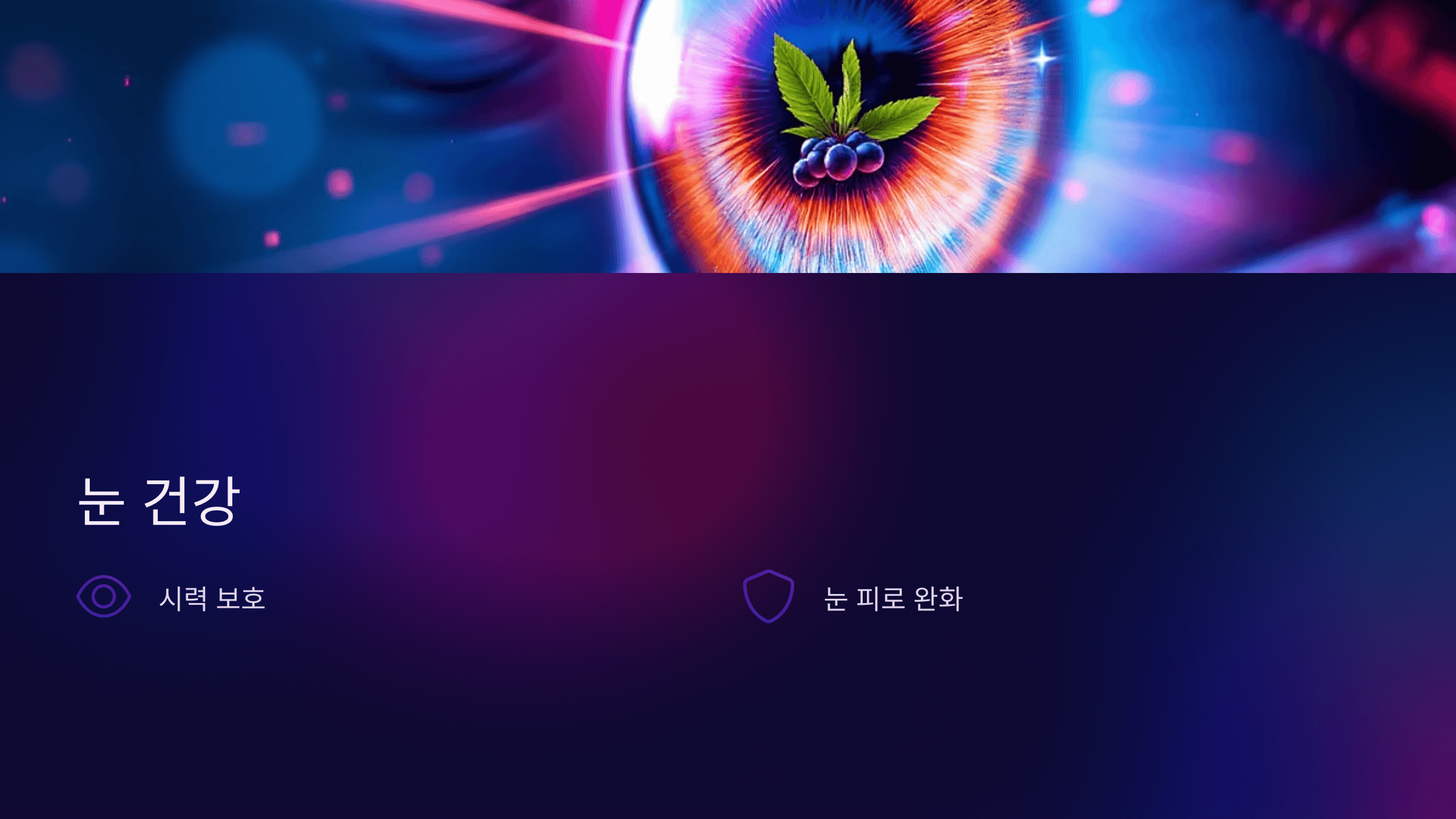 루테인, 제아잔틴이 함유되어 눈의 피로 완화와 시력 보호에 효과적이에요.