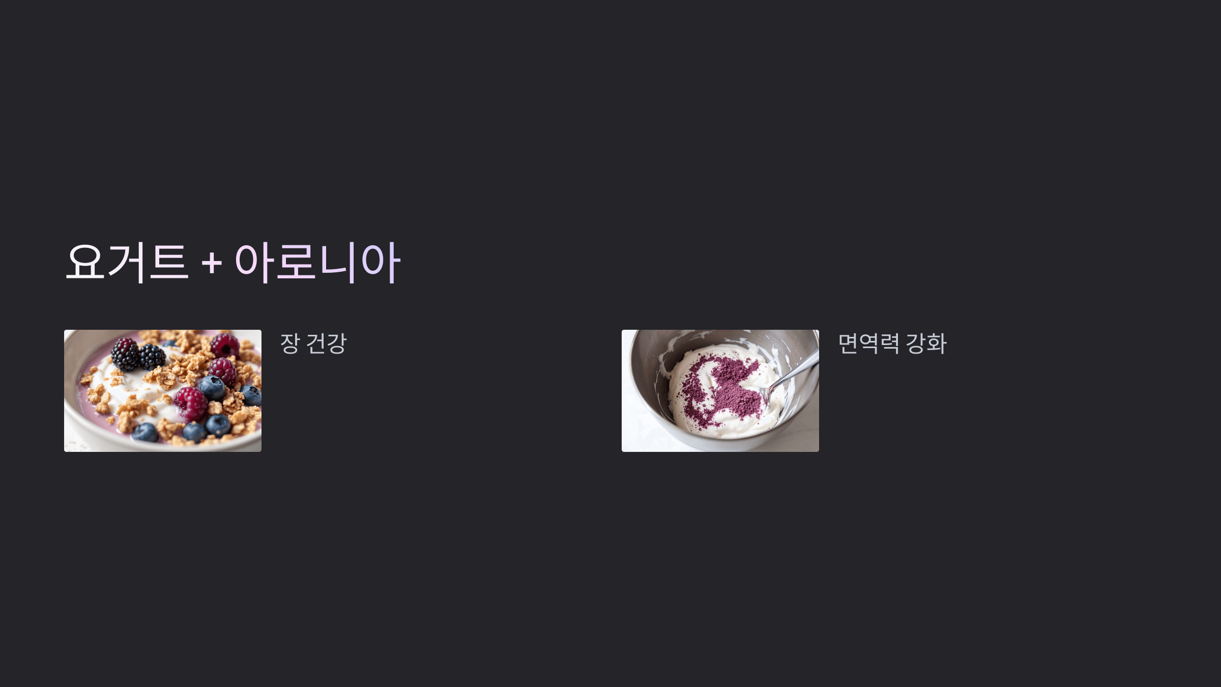 요거트에 아로니아 분말이나 생과를 넣으면 장 건강과 면역력 강화에 더할 나위 없이 좋아요.