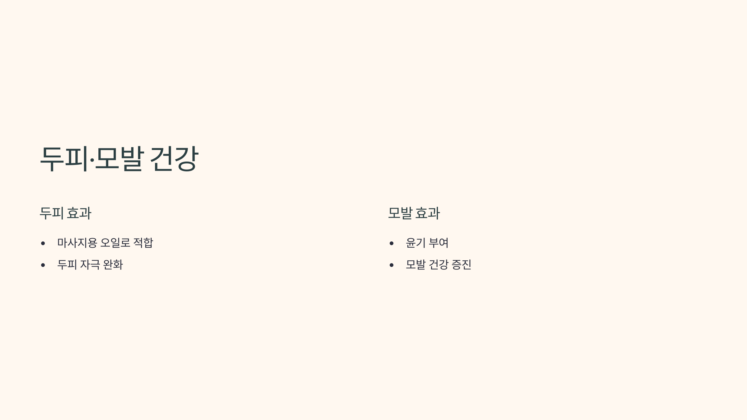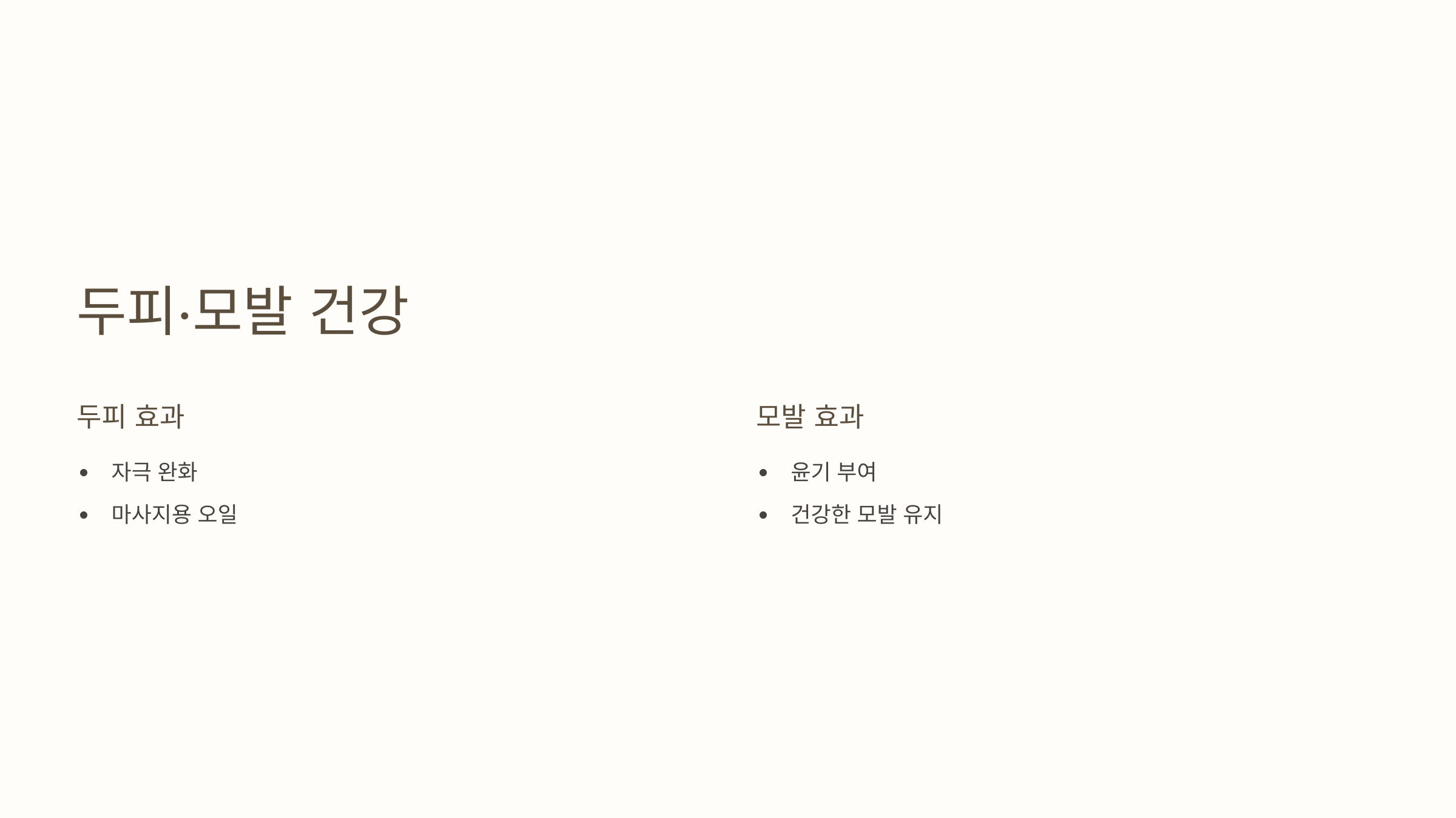두피에 바르면 가려움 완화, 탈모 예방에도 도움된다고 해요.