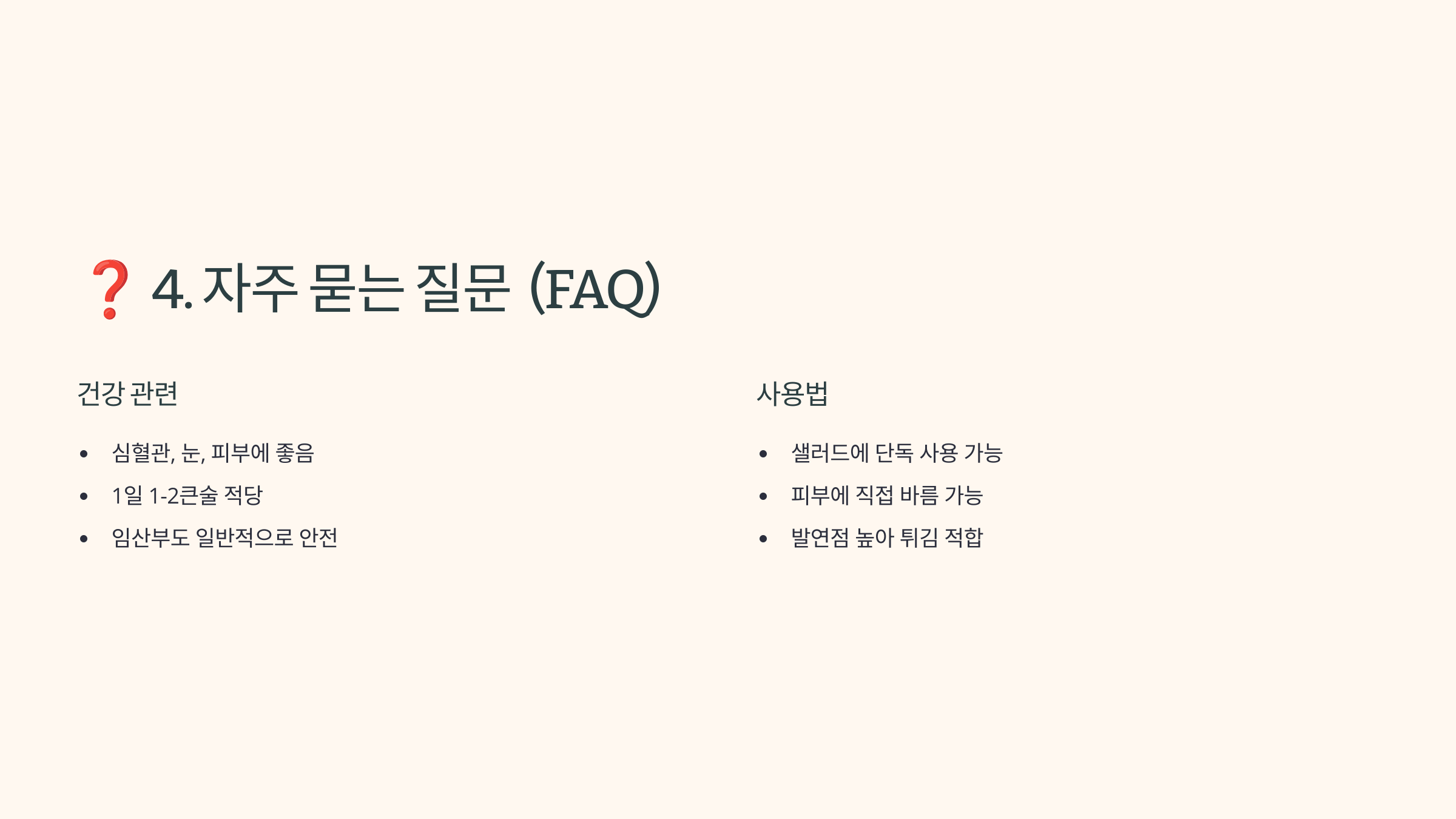 식용, 스킨케어용 모두 일반적으로 안전하지만, 개인에 따라 다를 수 있으니 전문가와 상담하세요. - 얼마나 자주 먹어야 하나요?