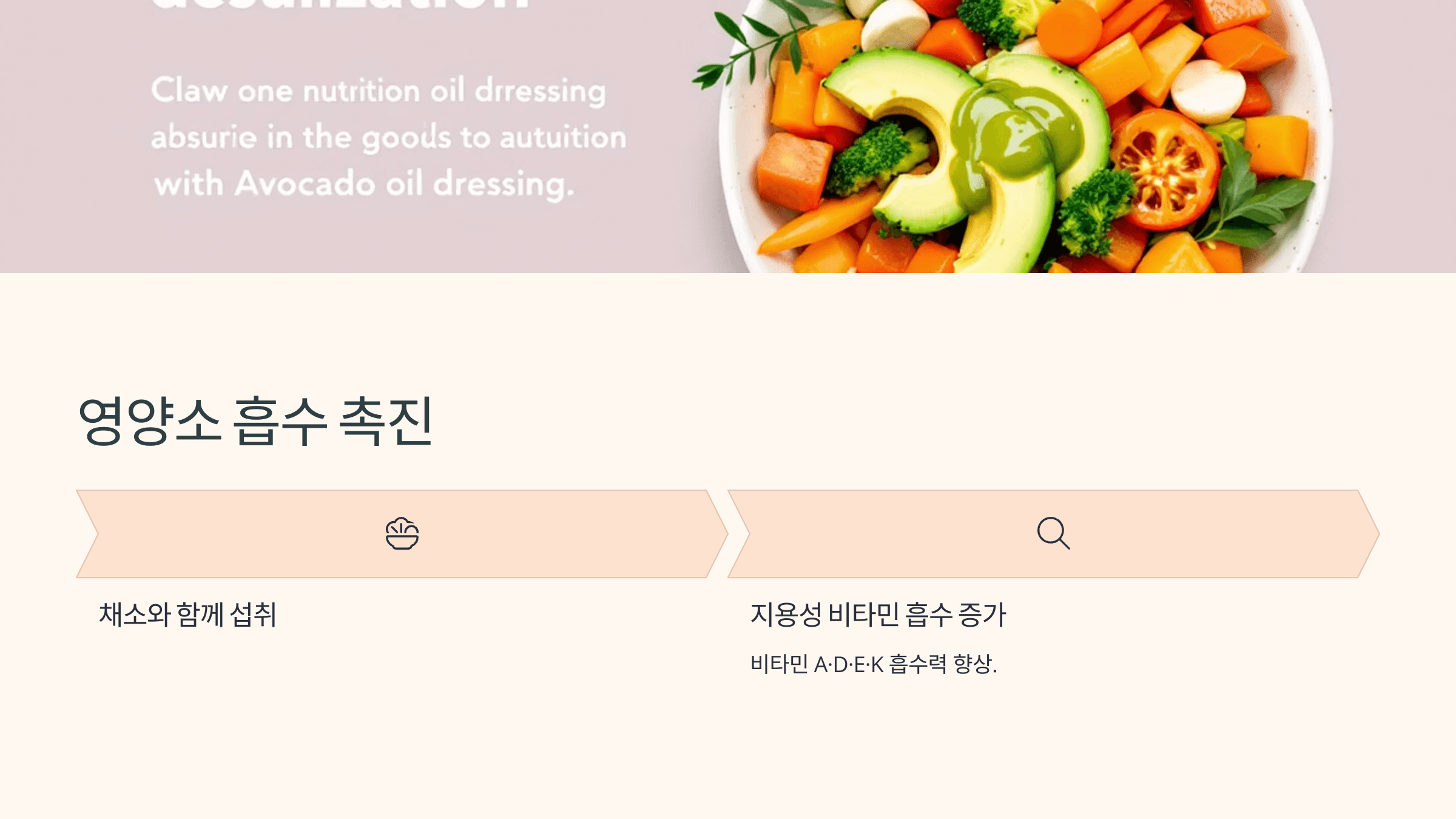 네! 심혈관, 눈, 피부, 모발, 체중 관리 등 다양한 효능이 있습니다. - 샐러드에 아보카도 오일만 써도 되나요?