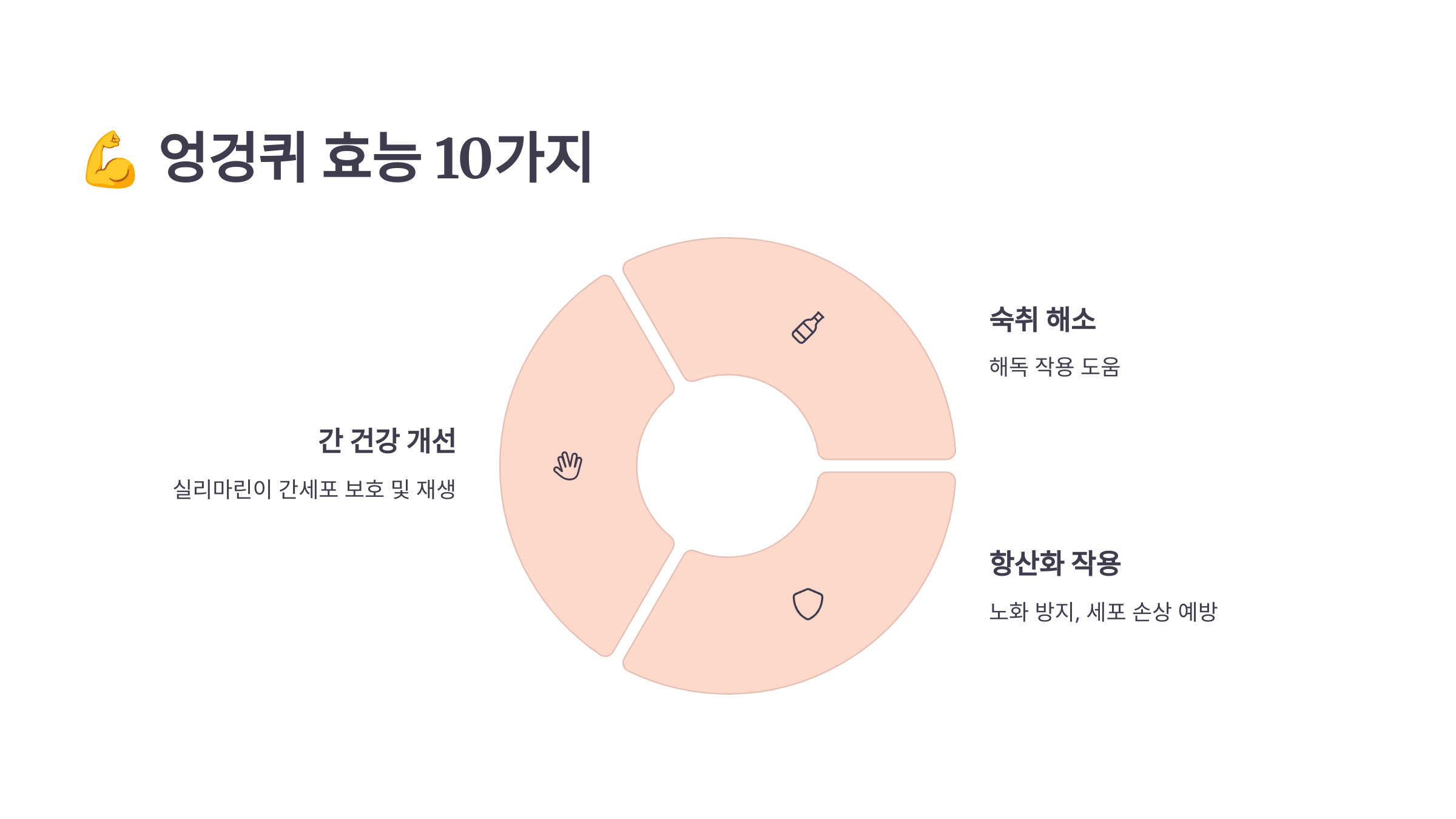 엉겅퀴의 대표 효능이에요. 실리마린이 간세포를 보호하고 재생을 돕기 때문에