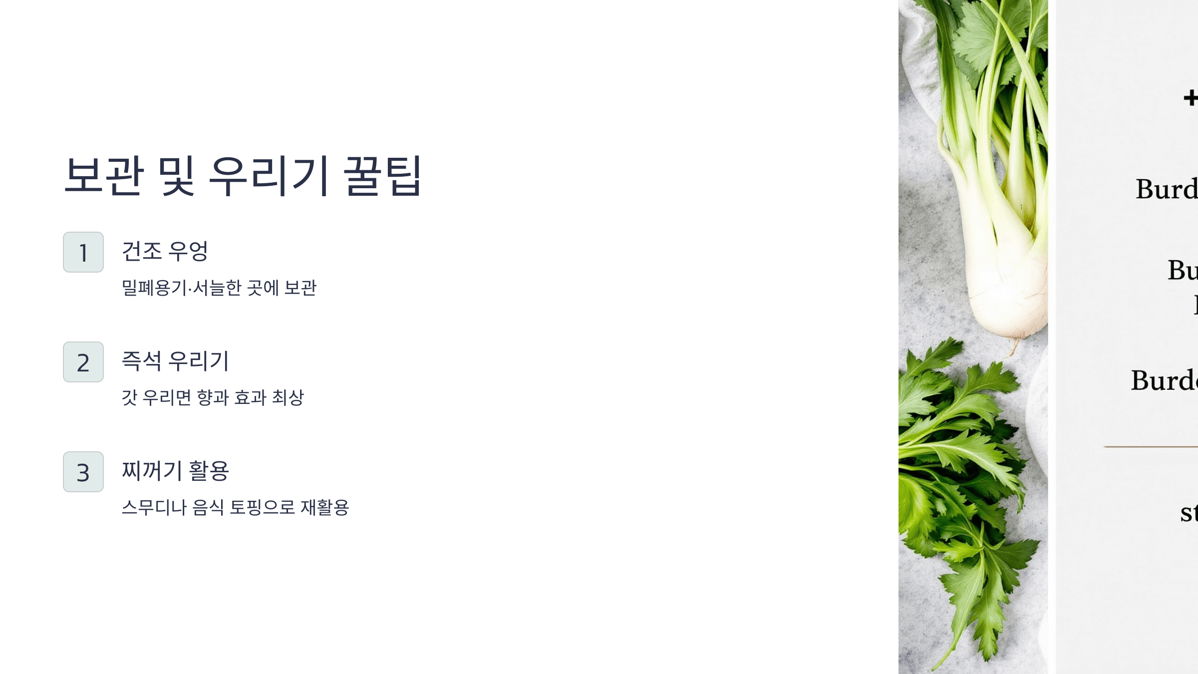 냉장 보관 시 1–2일 내 소비하세요. - 우려낸 찌꺼기 활용