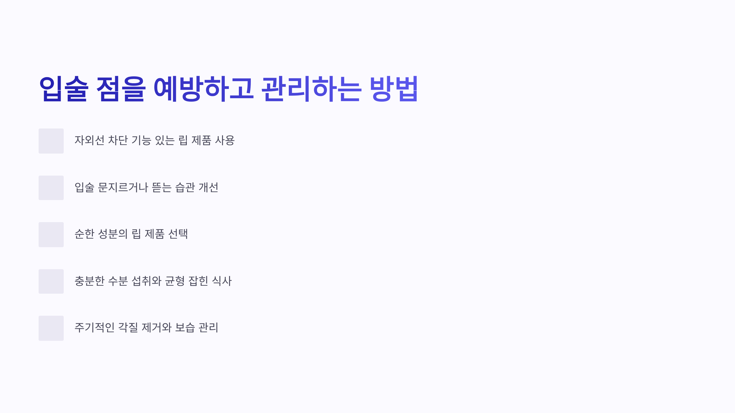- 입술을 자주 문지르거나 뜯는 습관 개선