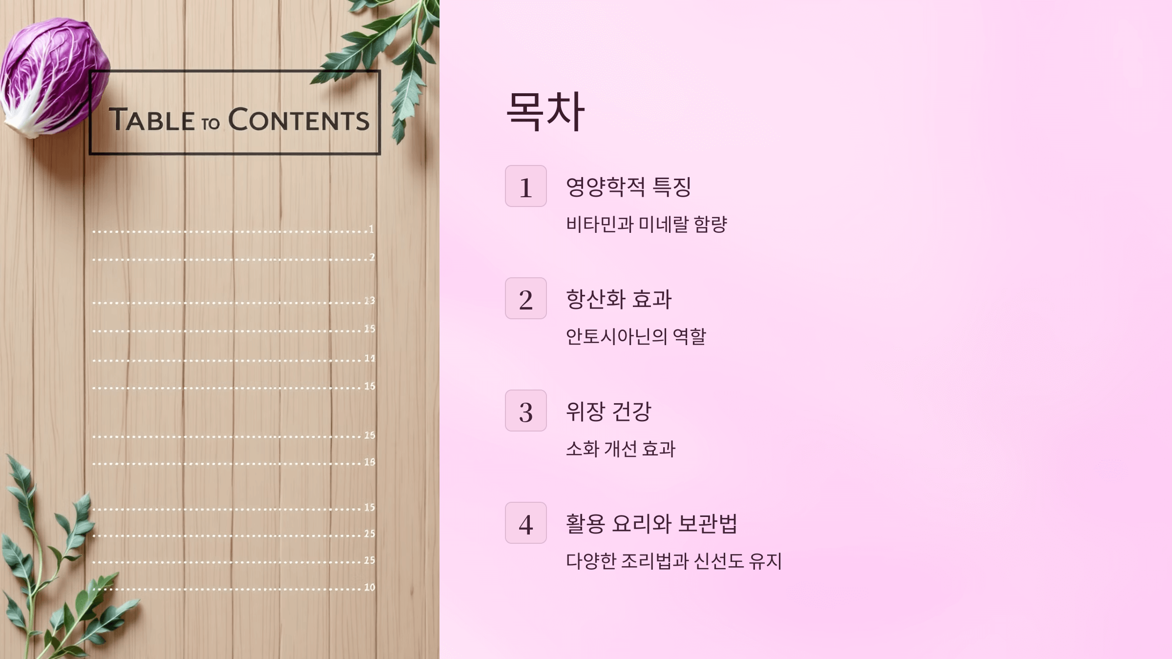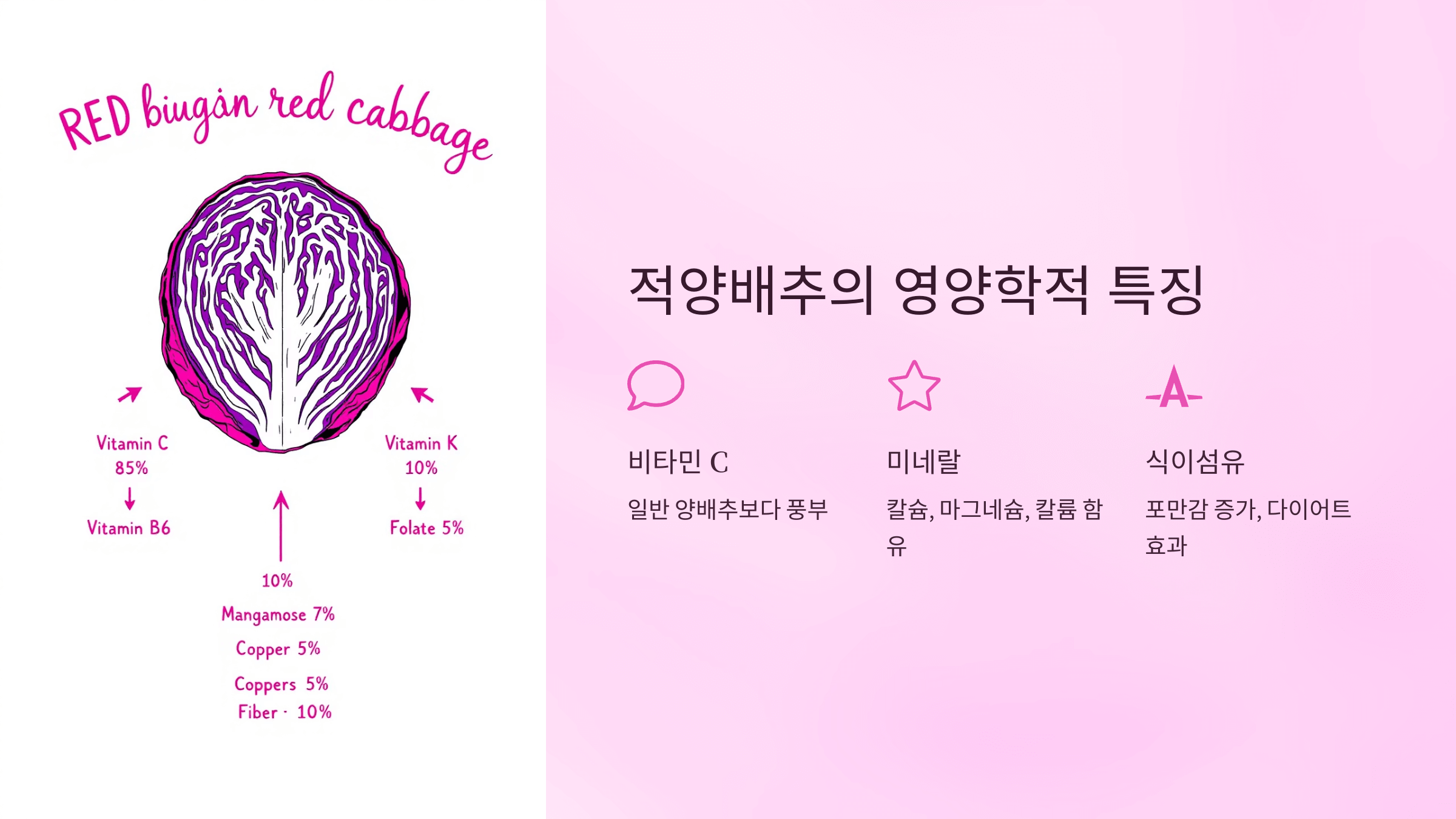 적양배추는 일반 양배추보다 비타민 C와 안토시아닌이 훨씬 풍부해요.