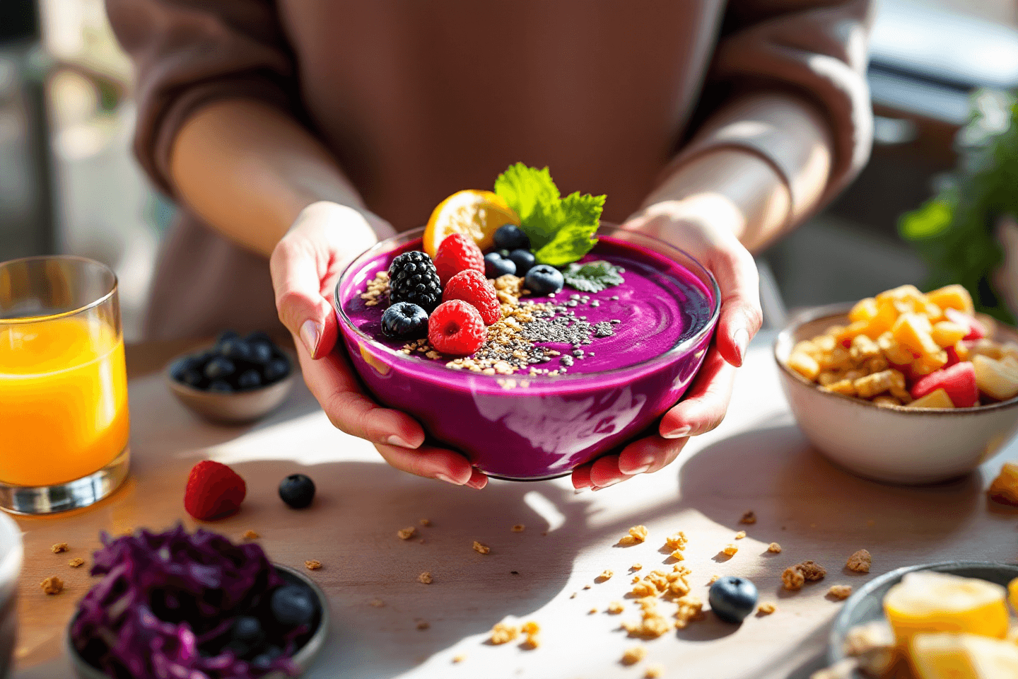 적양배추즙은 위장 보호, 피부 미용, 항산화 효과에 도움을 줘요.