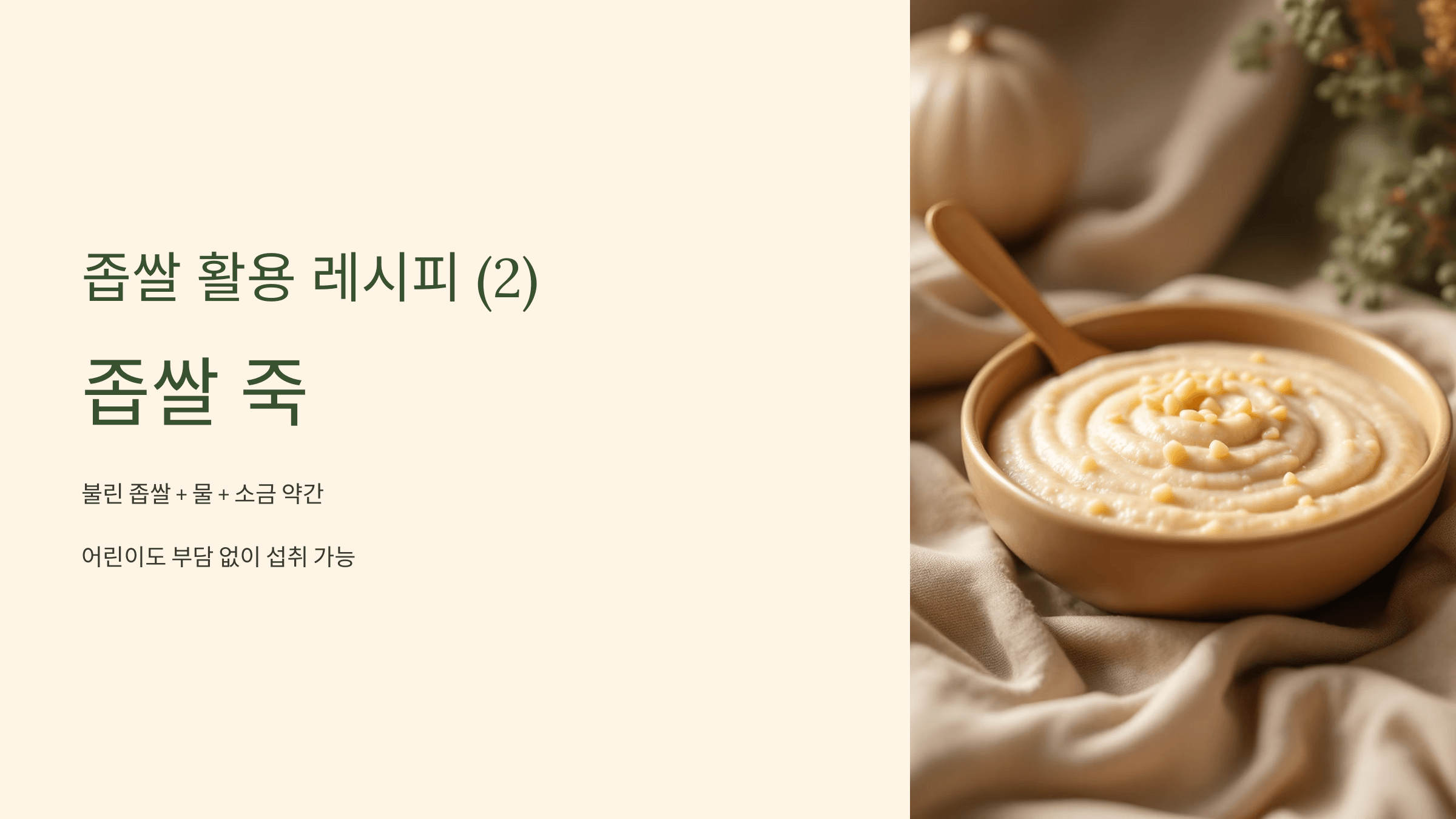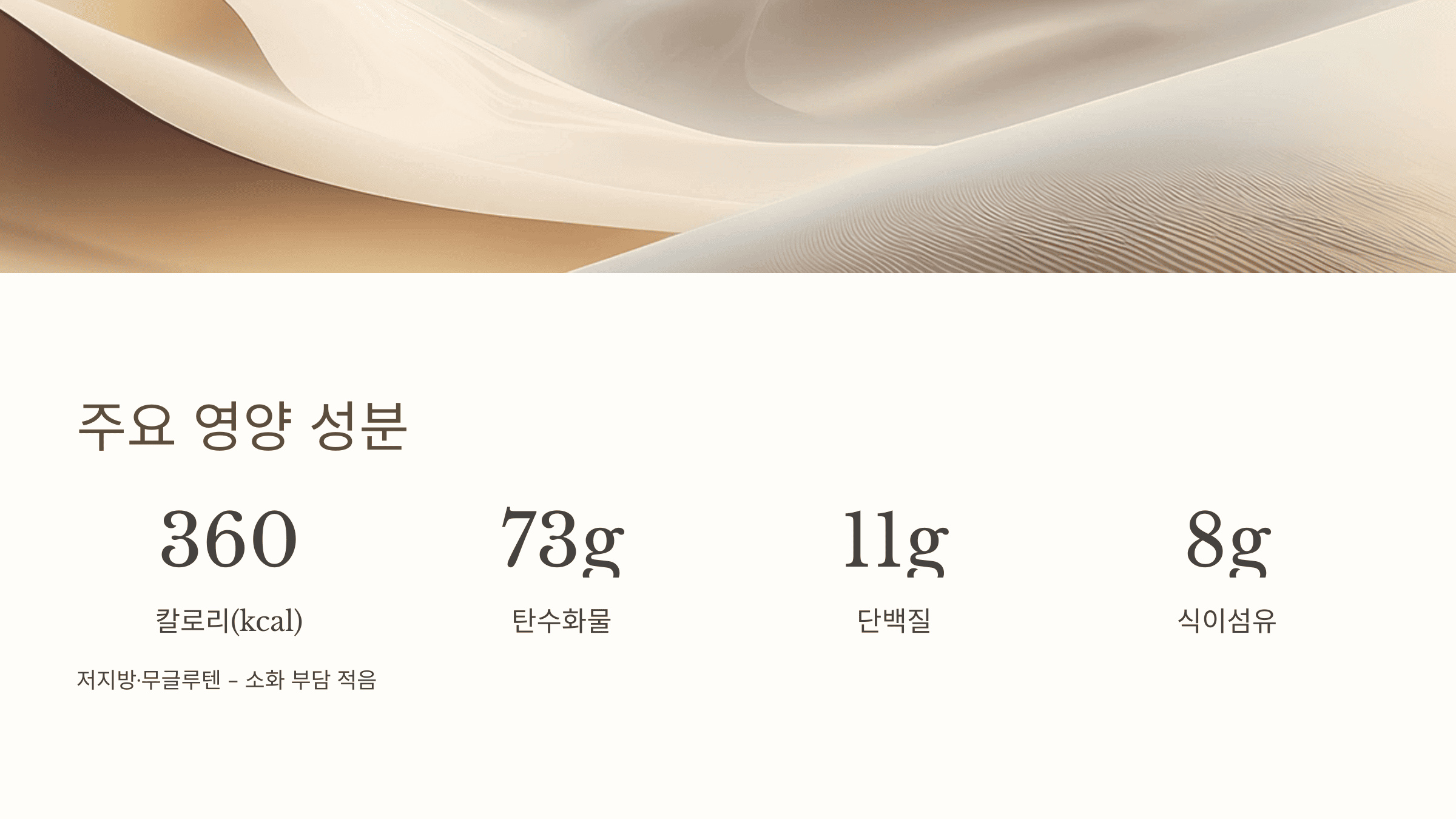 쌀보다 소화가 잘돼 어린이, 노인, 소화 민감자에게 좋고,