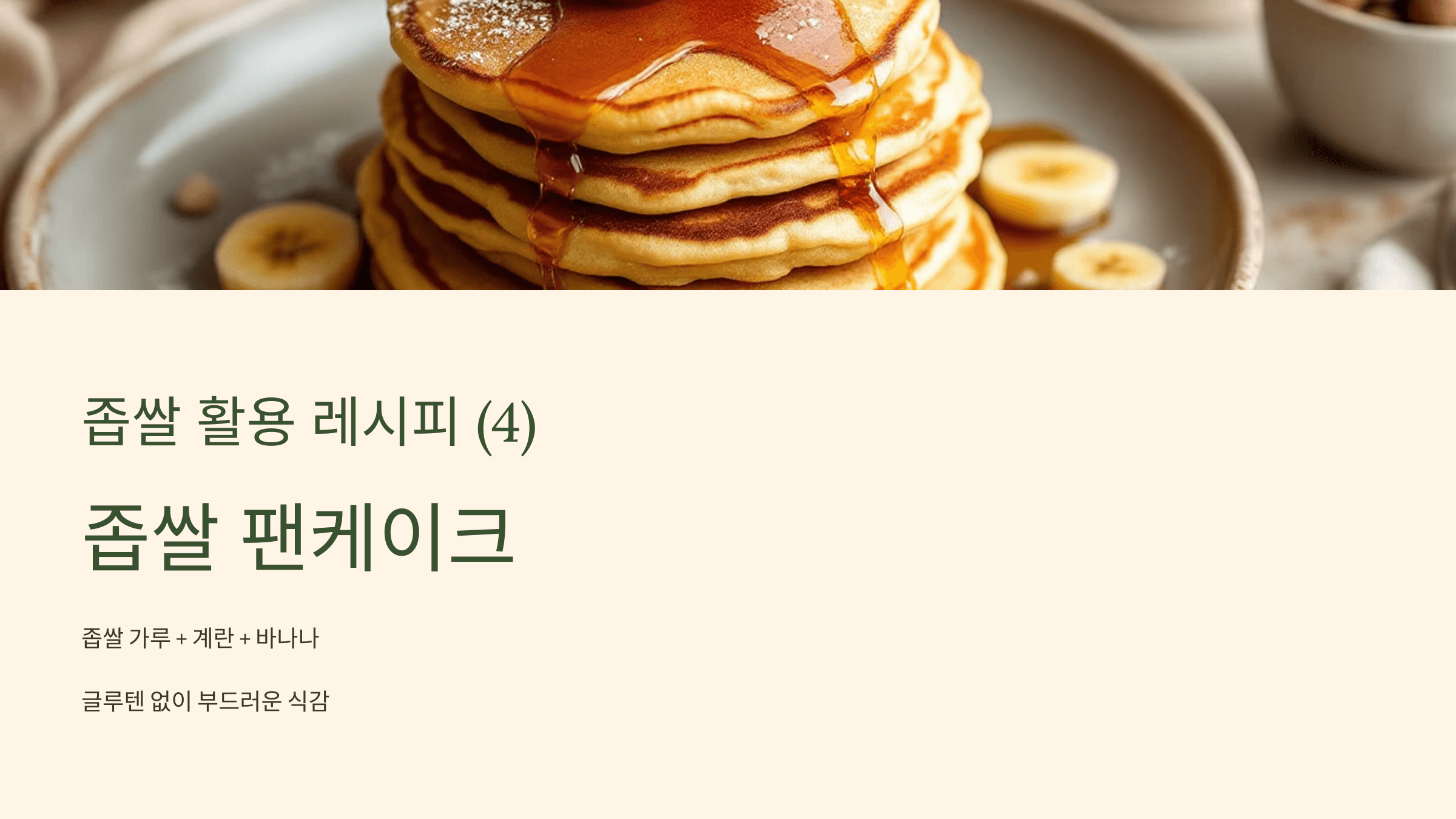 → 좁쌀 가루로 팬케이크나 글루텐프리 베이킹에 활용 가능합니다.