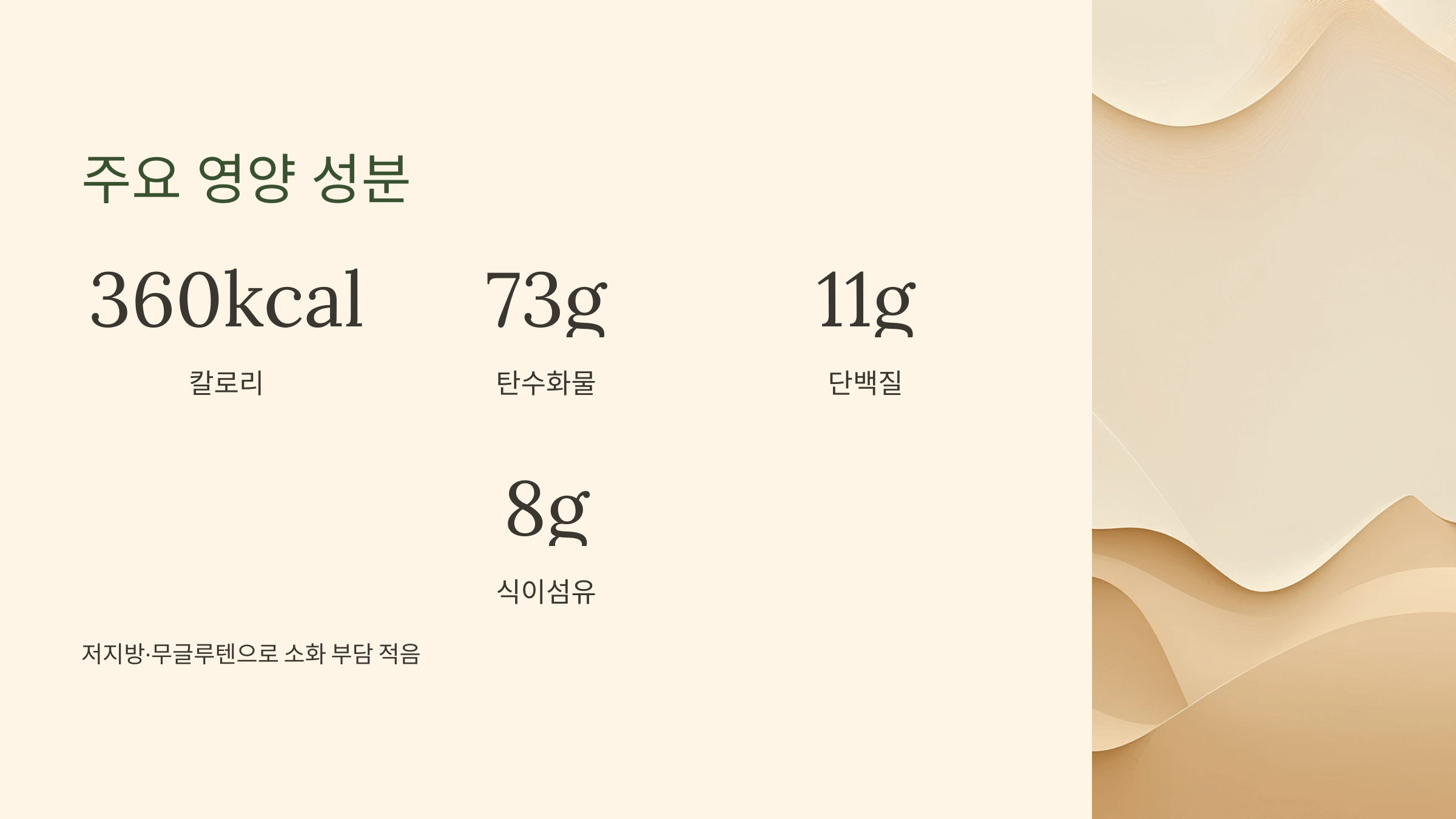 - 칼로리: 약 360 kcal