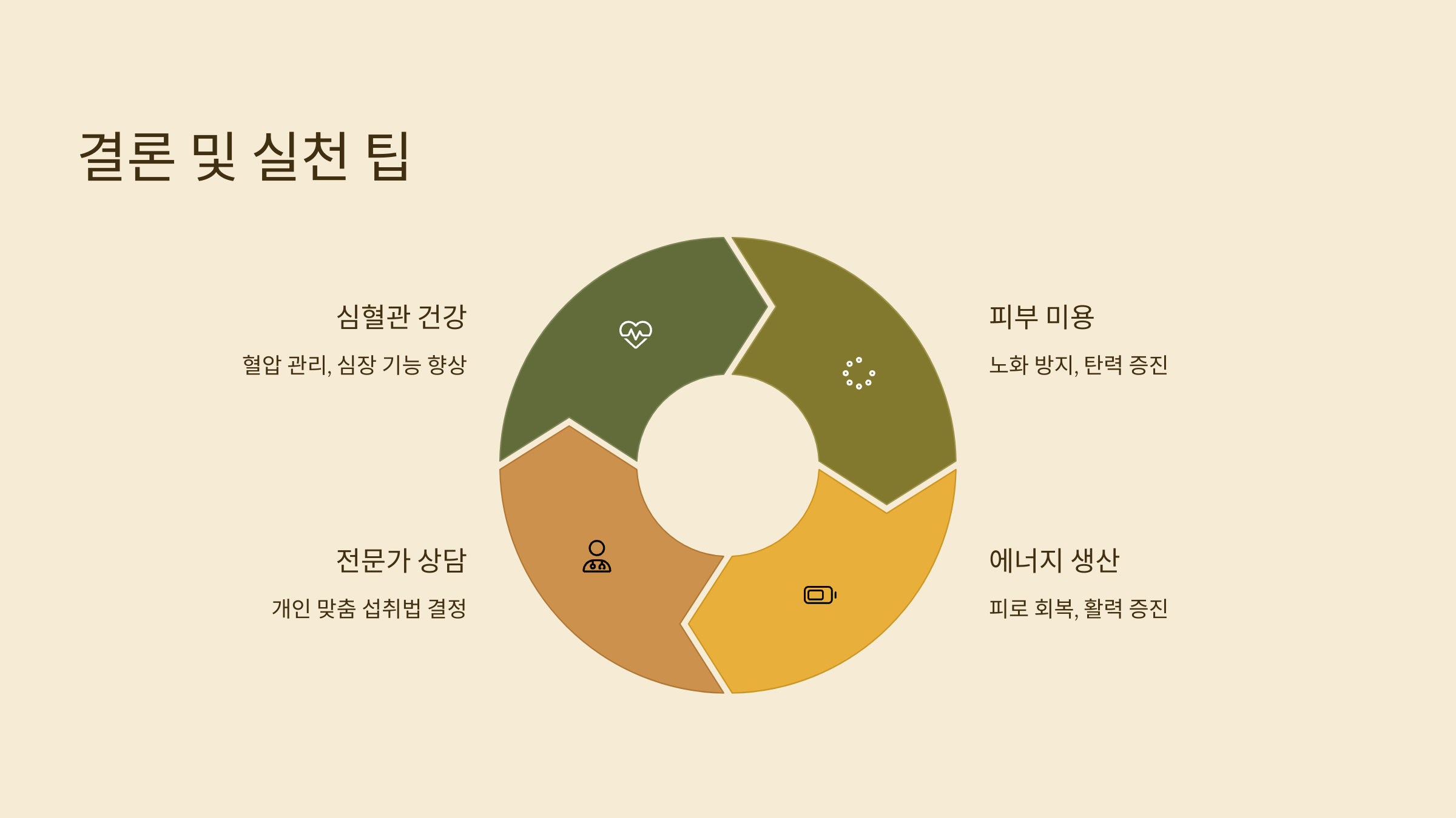 코엔자임 Q10은 에너지 생산과 항산화 작용을 통해 심혈관 건강, 피부 미용, 피로 회복 등에 다양한 이점을 제공합니다. 일상에서 코엔자임 Q10을 적절히 섭취하여 건강을 유지하고, 필요에 따라 전문가와 상담하여 개인에 맞는 섭취 방법을 결정하는 것이 중요합니다.
