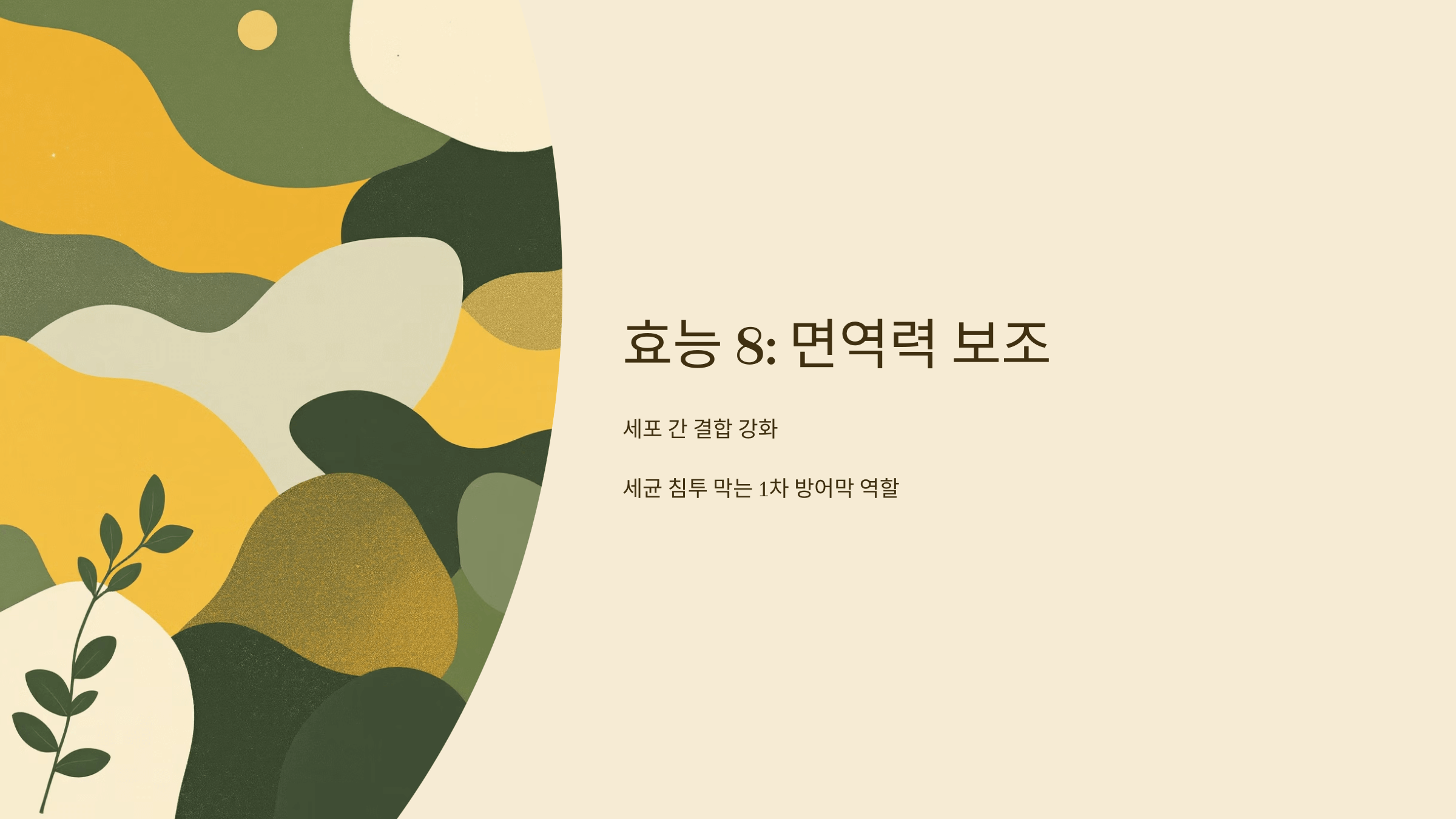 콜라겐은 세포 간 결합을 강화해 세균 침투를 막는 1차 방어막 역할도 수행합니다.