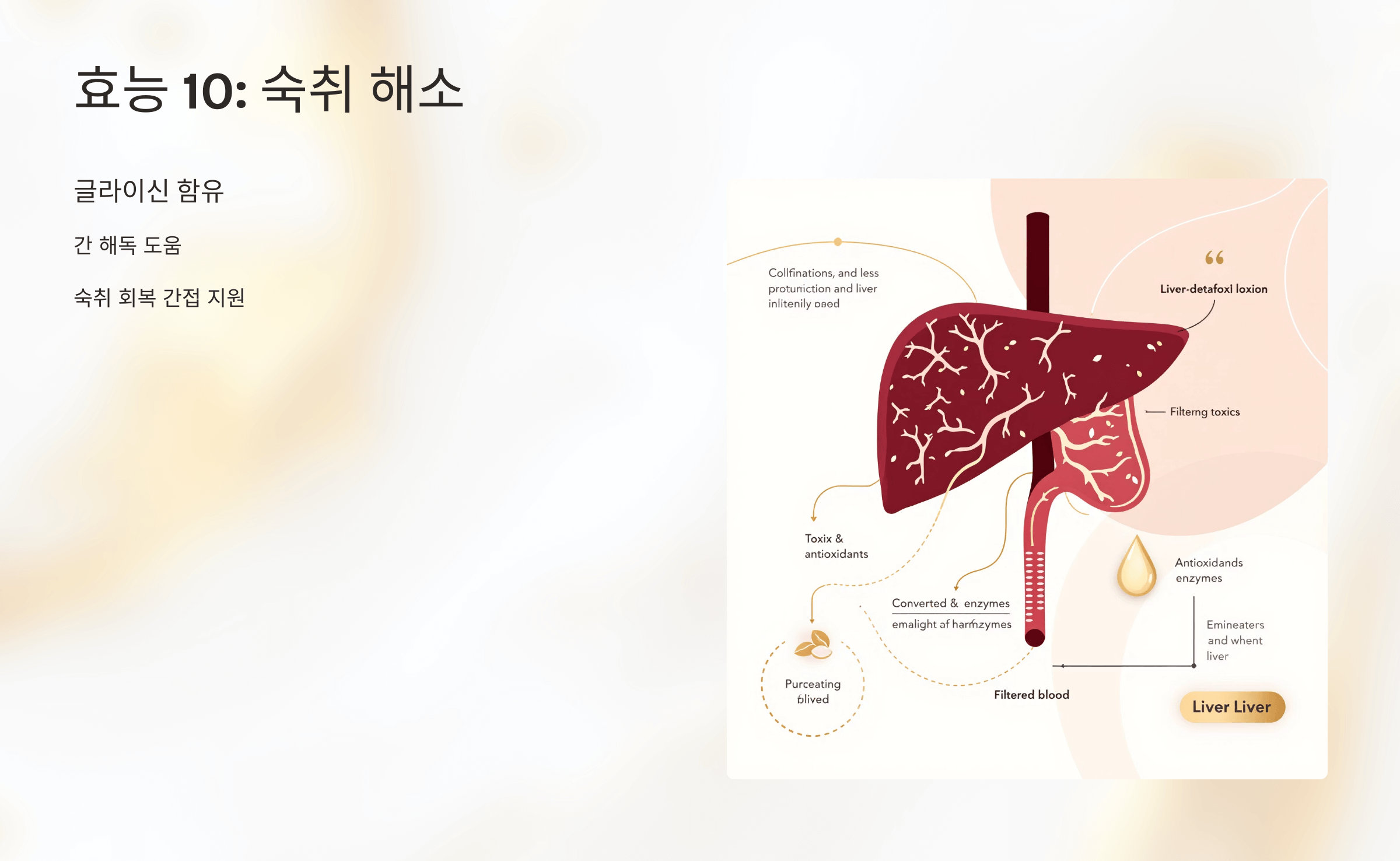 콜라겐에는 글라이신이 풍부해 간 해독을 도우며, 숙취 회복에도 간접적 도움을 줍니다.