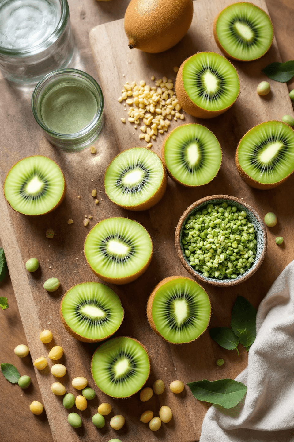키위에는 세로토닌의 전구체인 트립토판이 들어 있어, 수면의 질을 향상시킨다는 연구 결과도 있어요.
