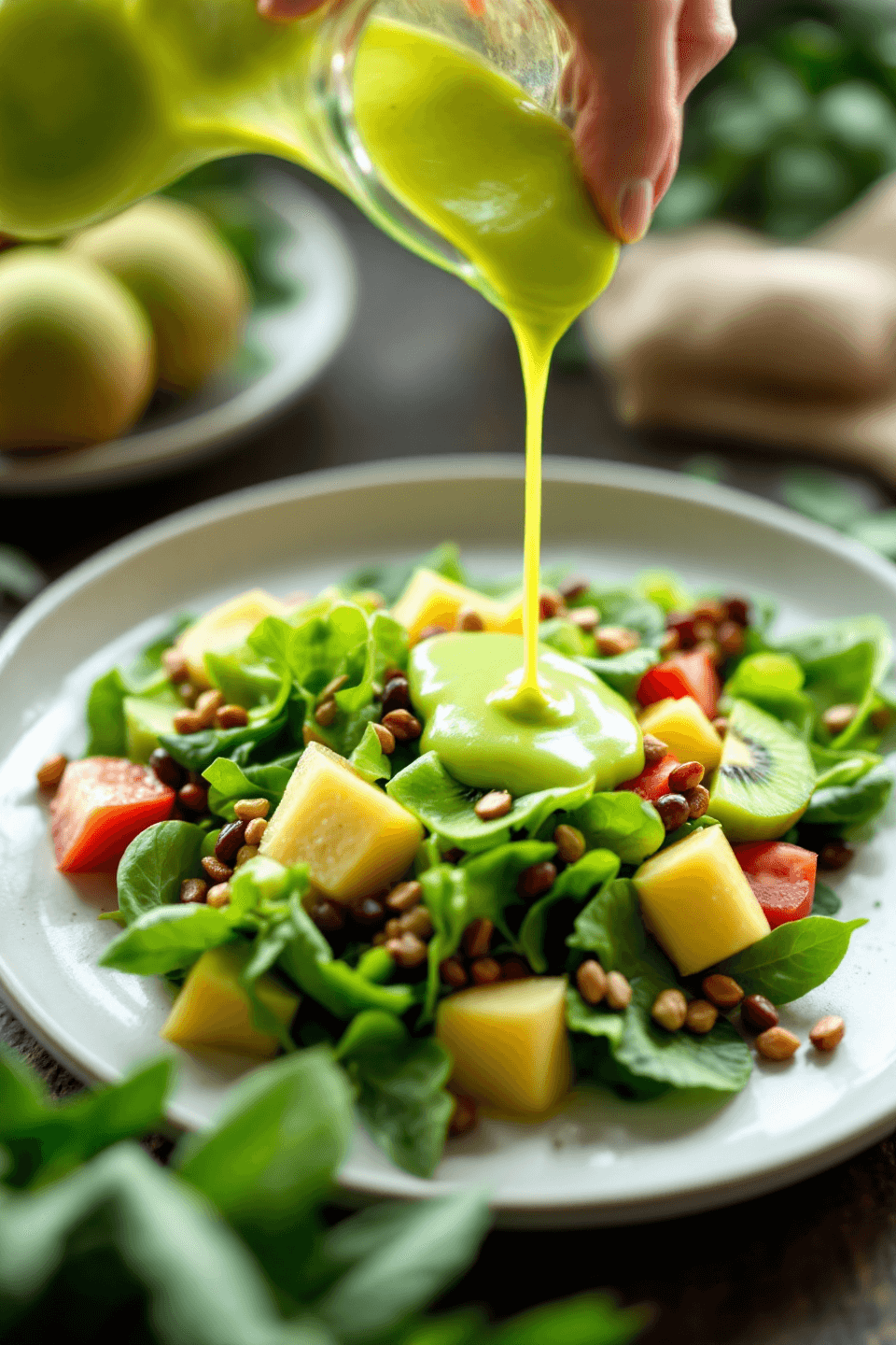 - 키위, 올리브오일, 꿀, 식초를 갈아 만든 드레싱은 샐러드에 감칠맛을 더해줘요.