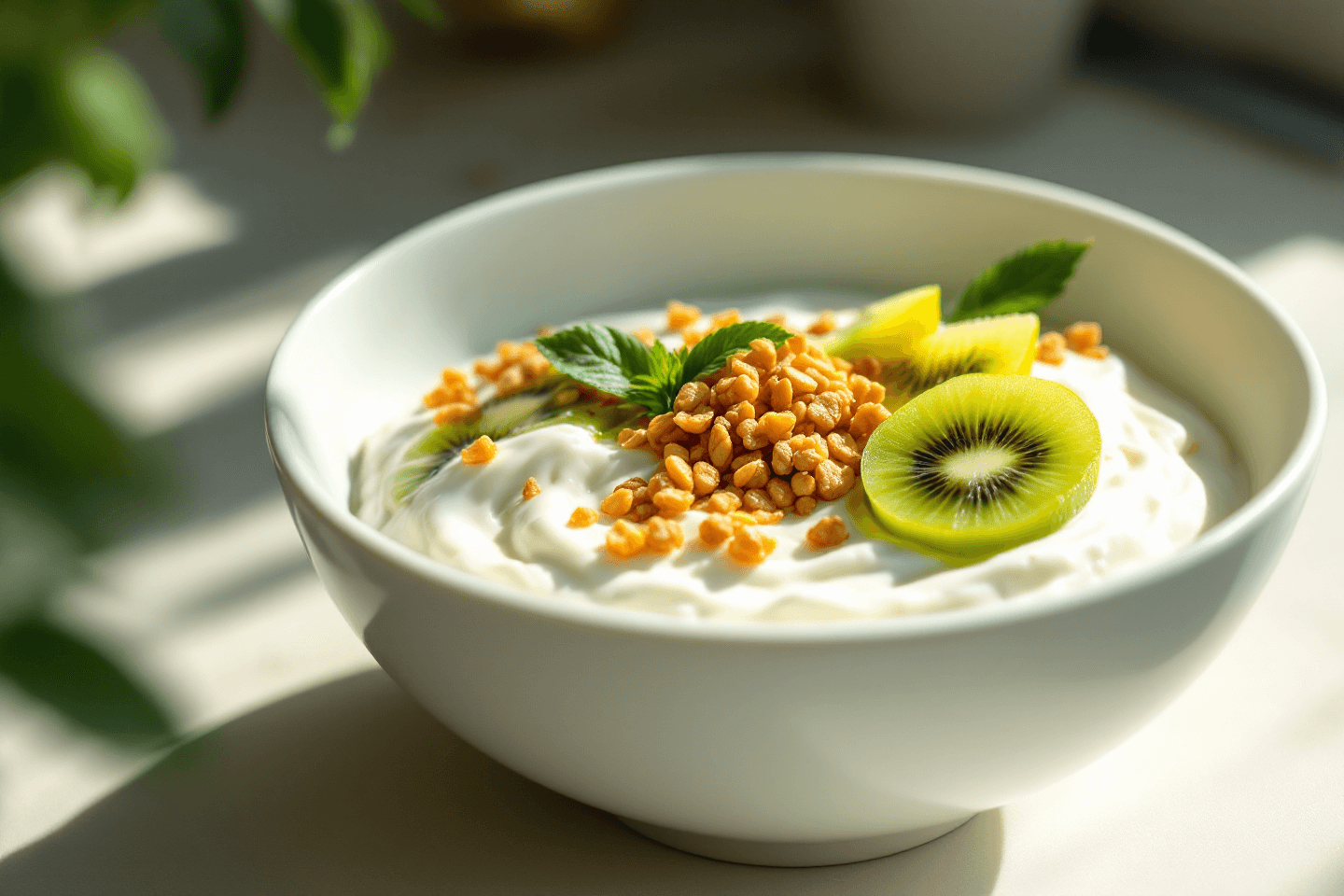 - 키위를 슬라이스해 그릭요거트 위에 올리고 그래놀라 추가하면 다이어트 간식 완성!