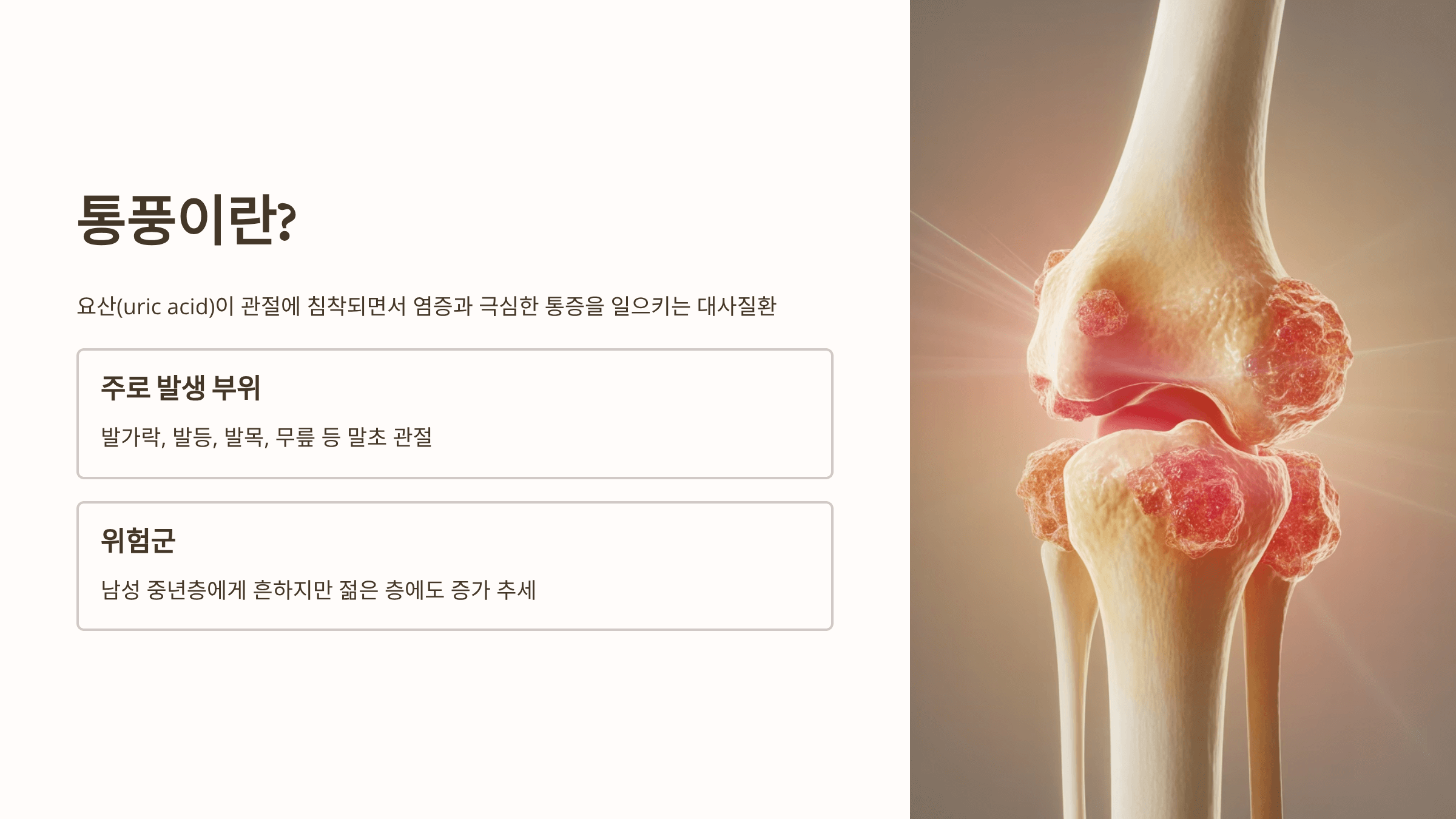 오늘은 통풍의 정의, 원인, 증상 10가지, 식단 및 생활관리, 자주 묻는 질문까지 정리해드릴게요!