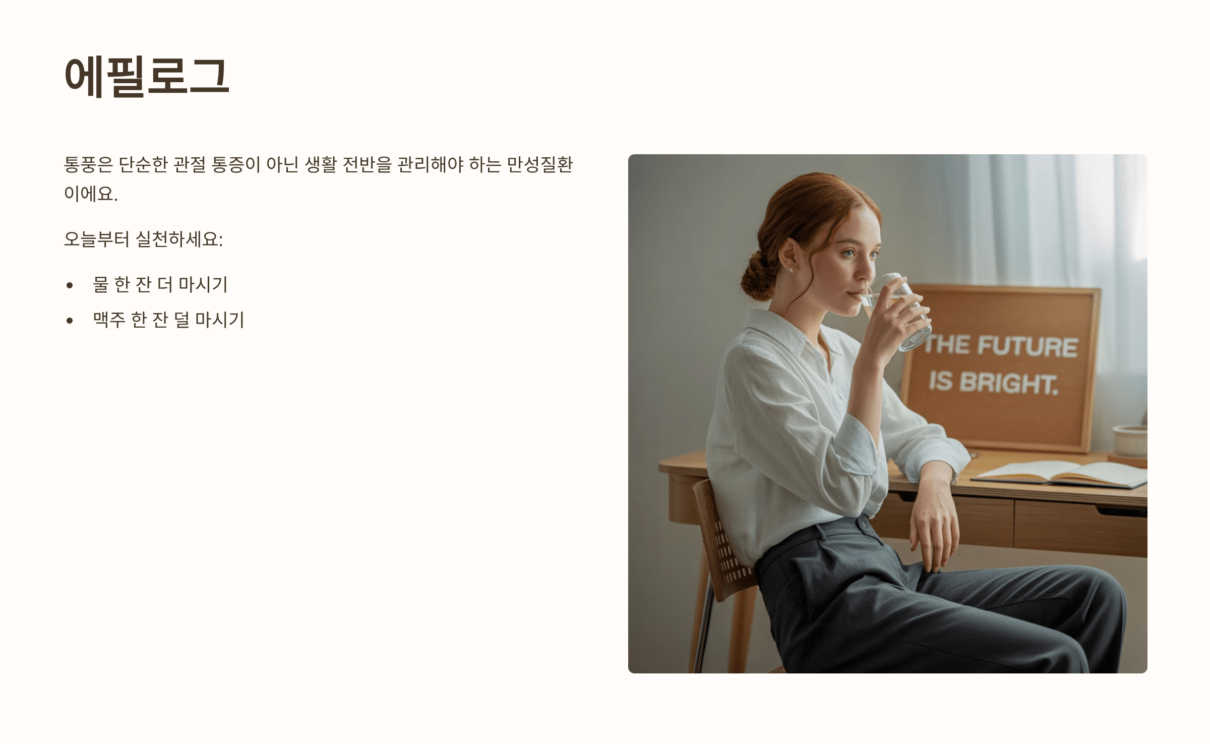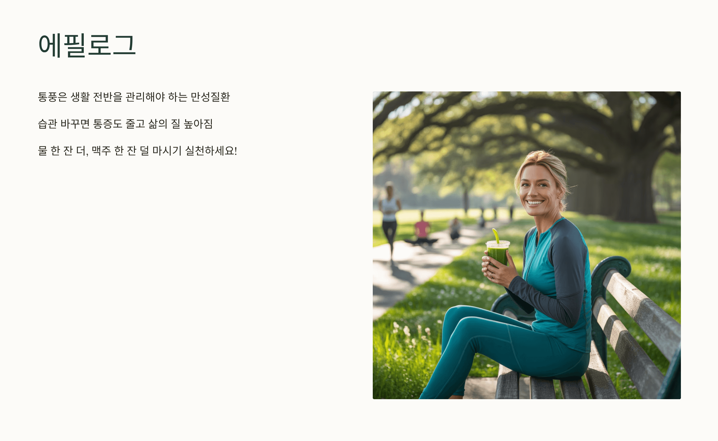 저도 처음엔 통풍이라는 단어조차 생소했지만, 습관을 바꾸면서 통증도 줄고 삶의 질이 높아졌답니다.