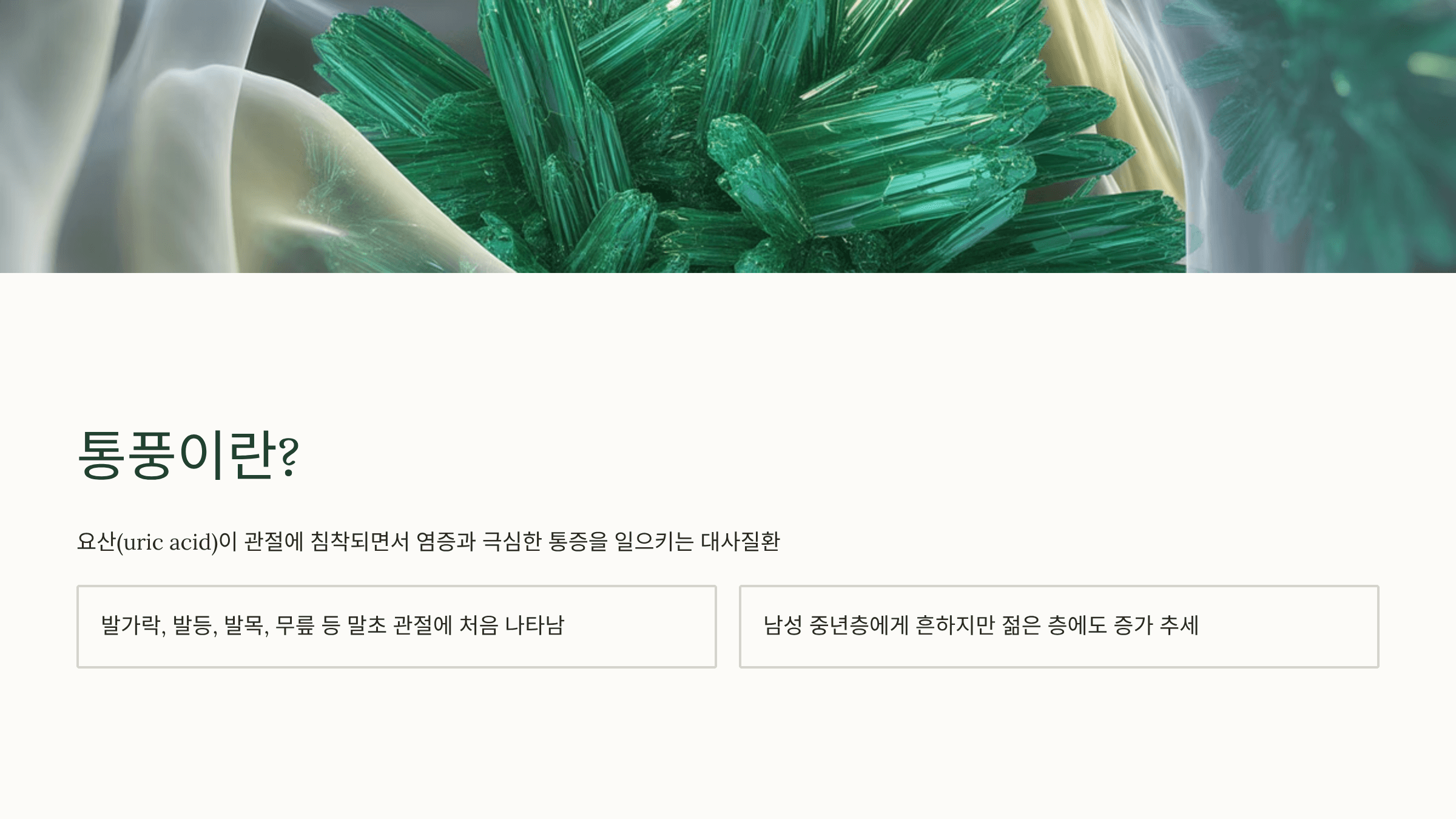 통풍(Gout)은 요산(uric acid)이라는 물질이 관절에 침착되면서 염증과 극심한 통증을 일으키는 대사질환이에요.