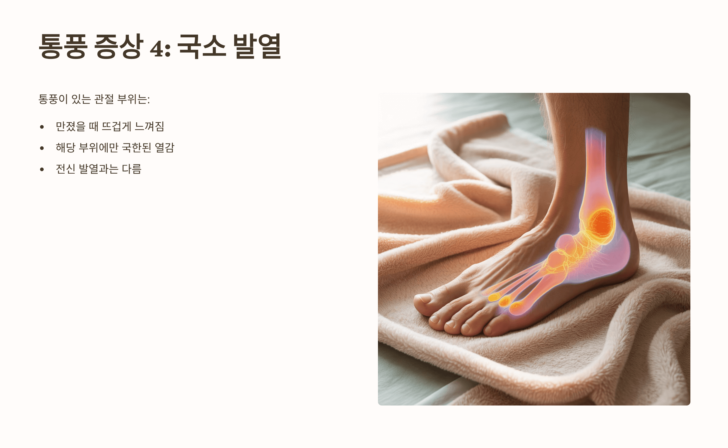 👉 가장 흔한 부위는 엄지발가락 관절이며, 그 외 발목, 무릎, 손가락 등에도 나타날 수 있어요.