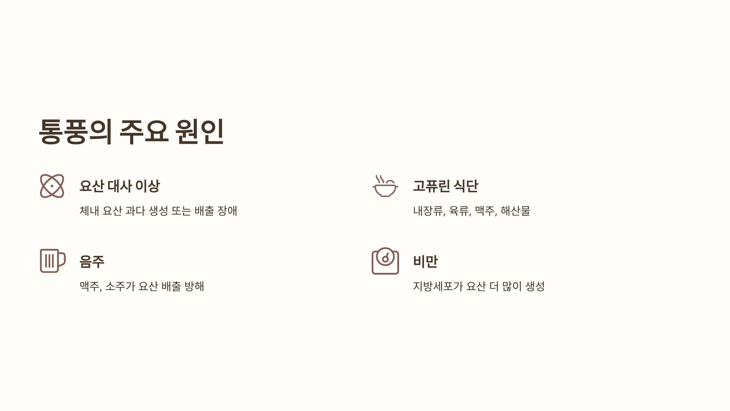 - 만성 질환 동반: 고혈압, 당뇨병, 신장 질환도 통풍 발생과 관련 있어요.