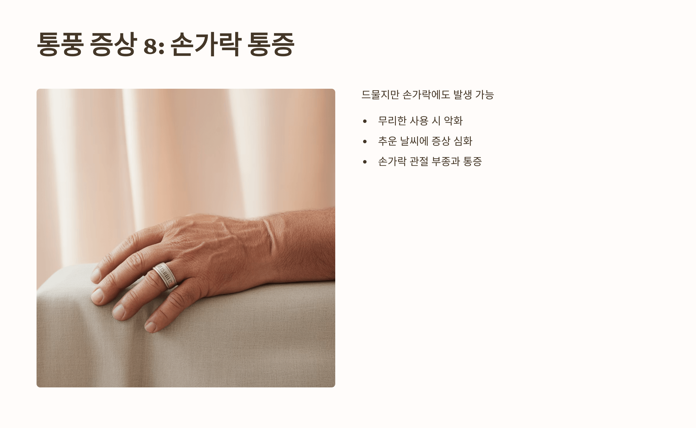 드물지만 통풍이 손가락에도 생길 수 있어요.