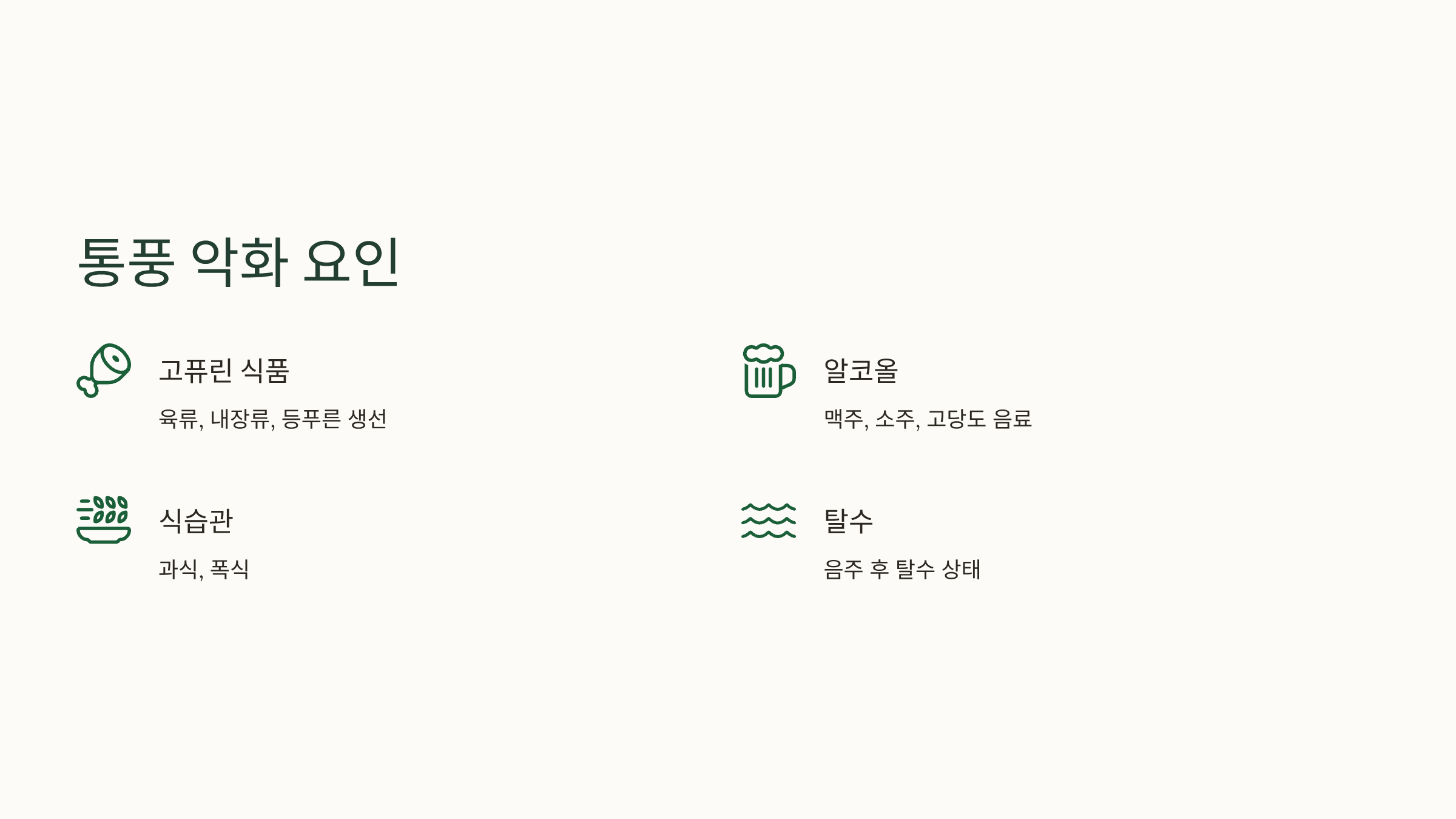 👉 맥주는 퓨린 함량이 높고, 요산 배출을 방해하기 때문에 통풍 발작을 유발할 수 있어요.