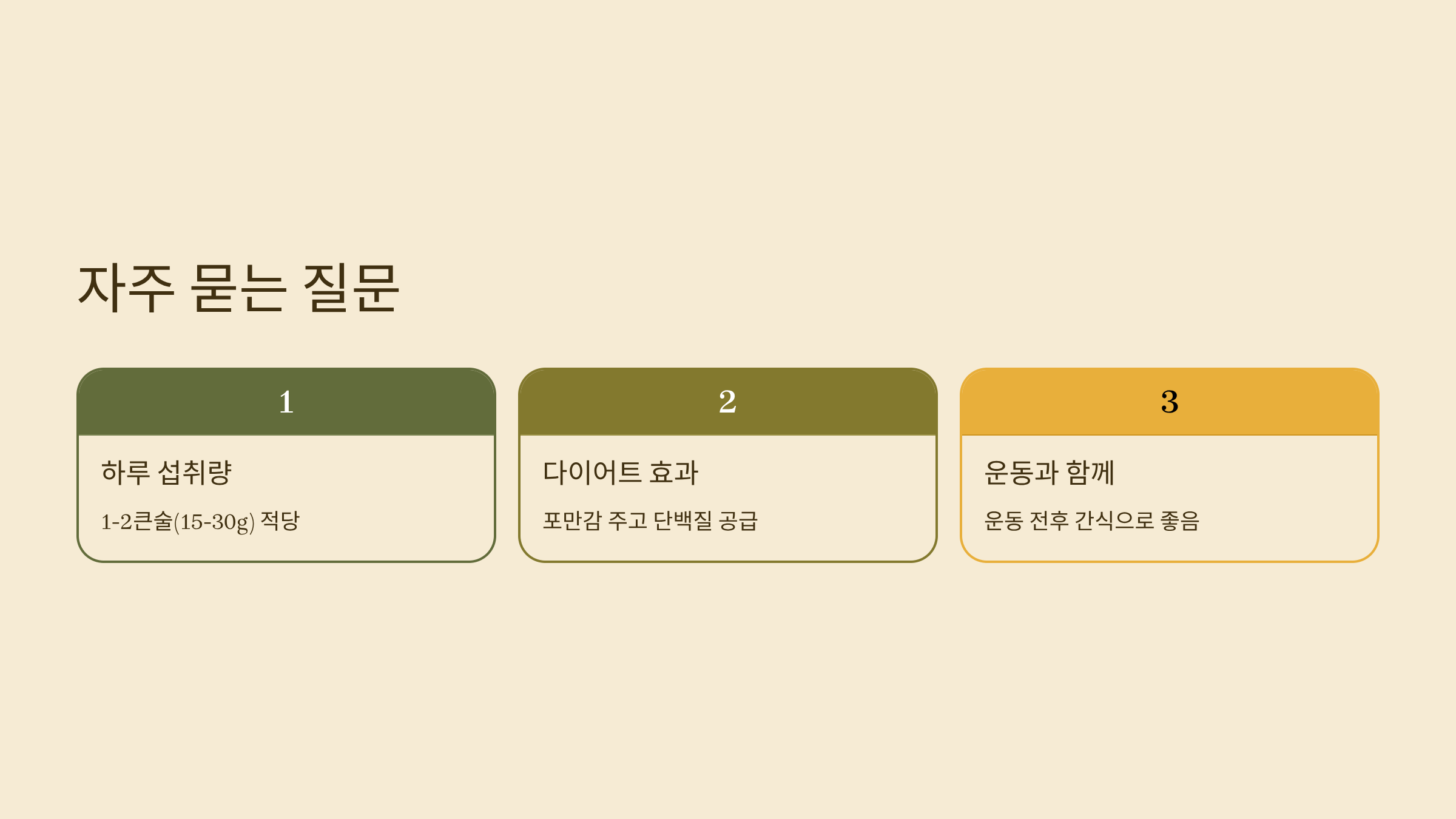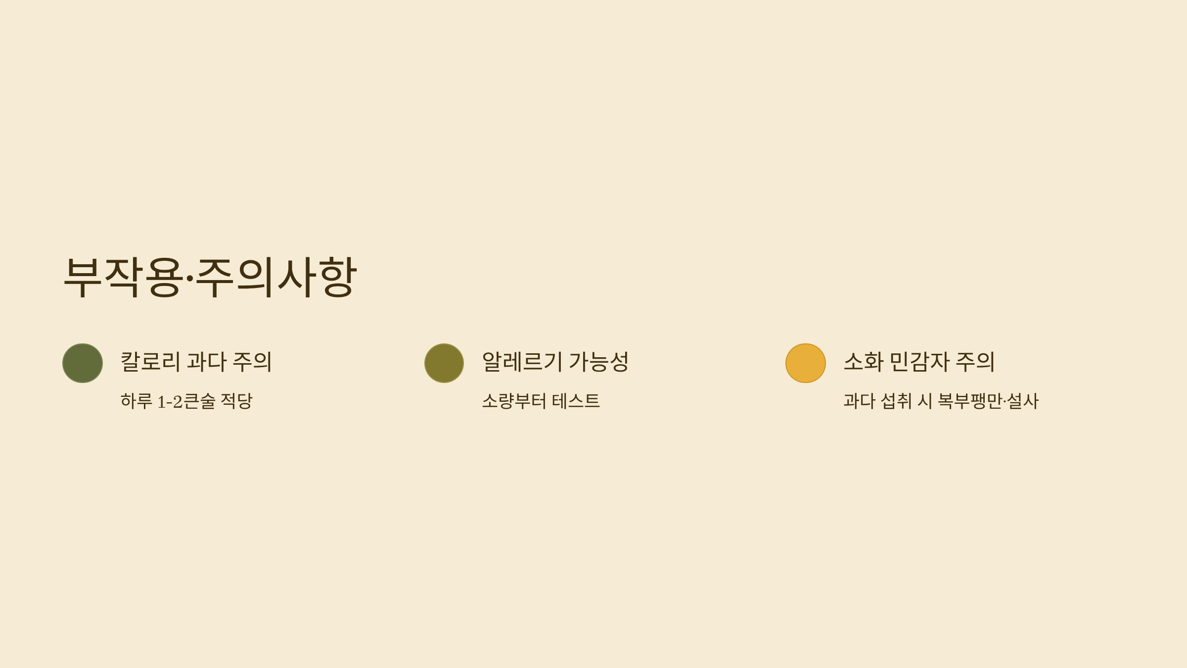 - 알레르기 가능성: 견과류나 씨앗류 알레르기 있는 분은 소량부터 테스트 필수입니다.