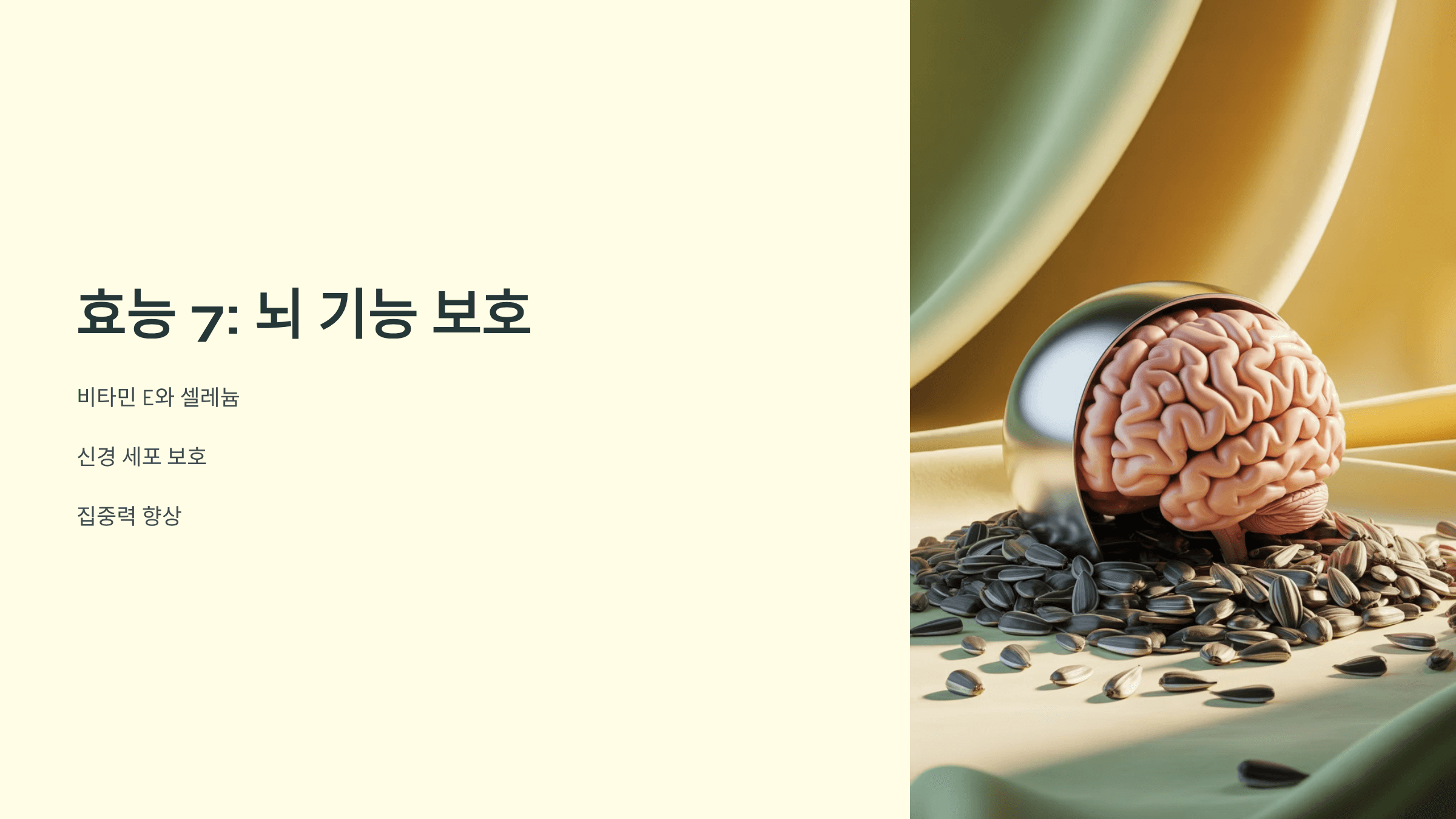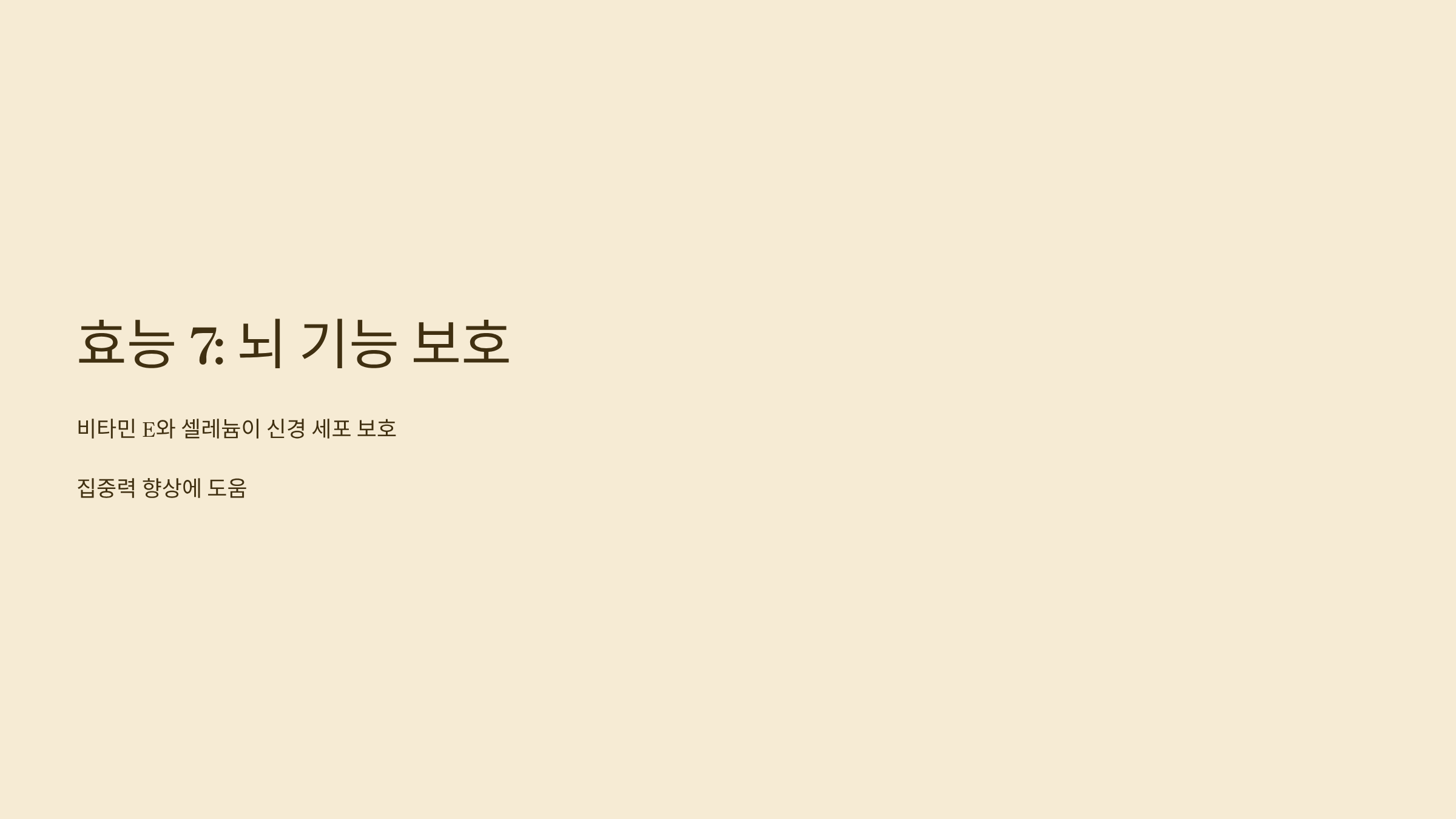 비타민 E와 셀레늄이 신경 세포 보호에 도움을 줘 집중력에도 좋아요.