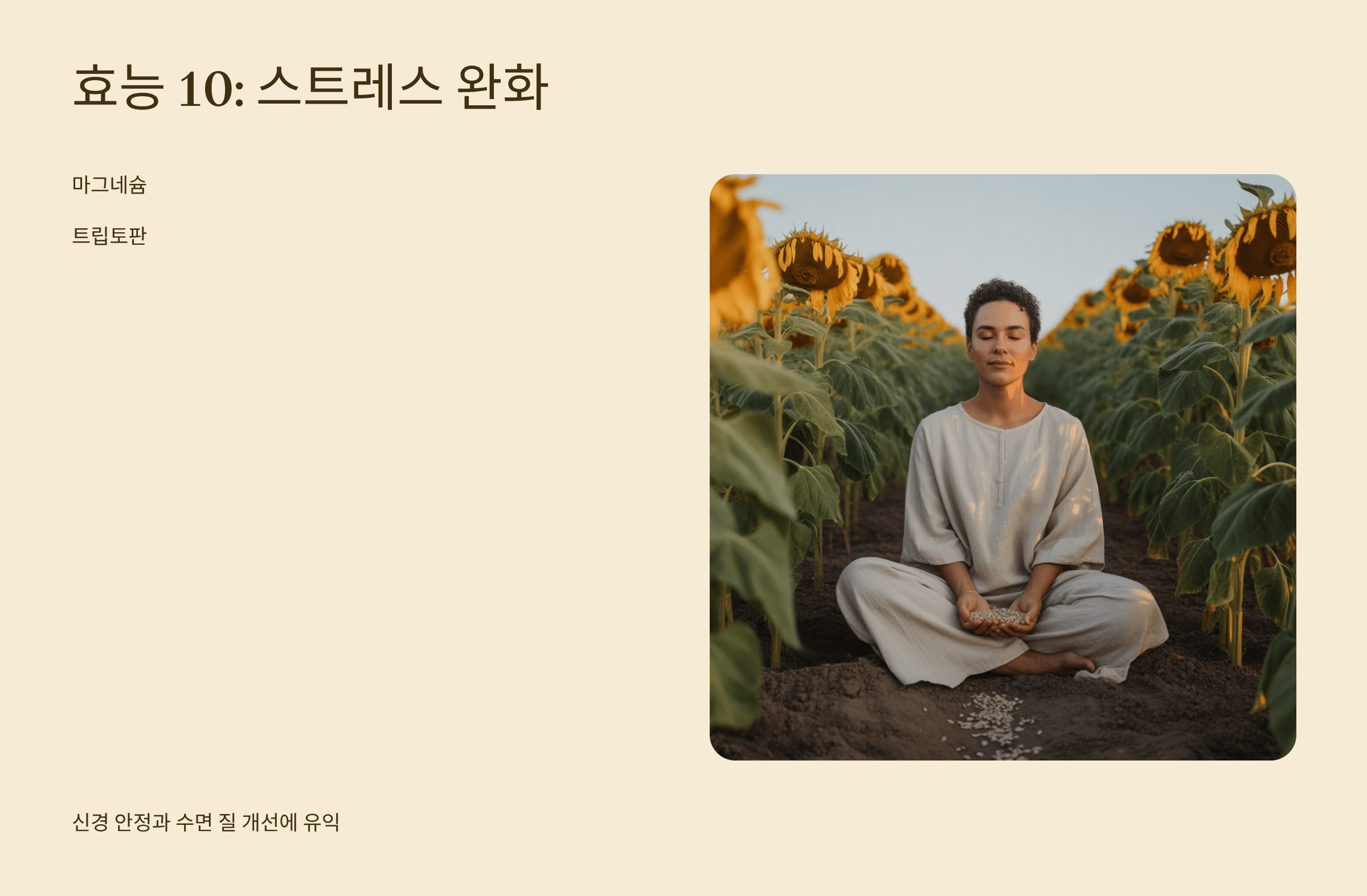 마그네슘과 트립토판 성분이 신경 안정과 수면 질 개선에도 유익합니다.