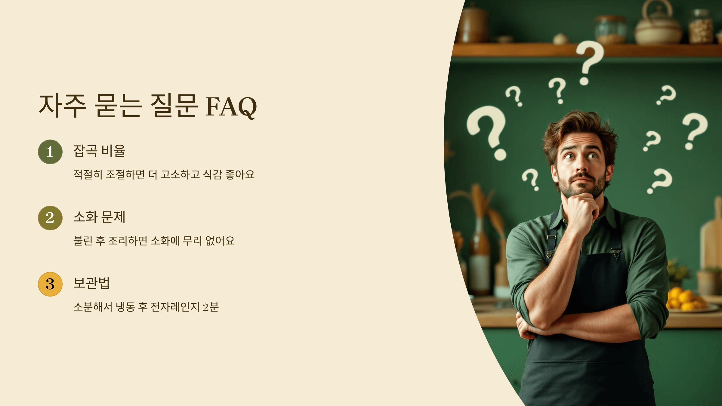 → 비율만 조절하면 더 고소하고 식감도 좋아요! - 현미에 잡곡을 섞으면 소화가 어렵지 않나요?
