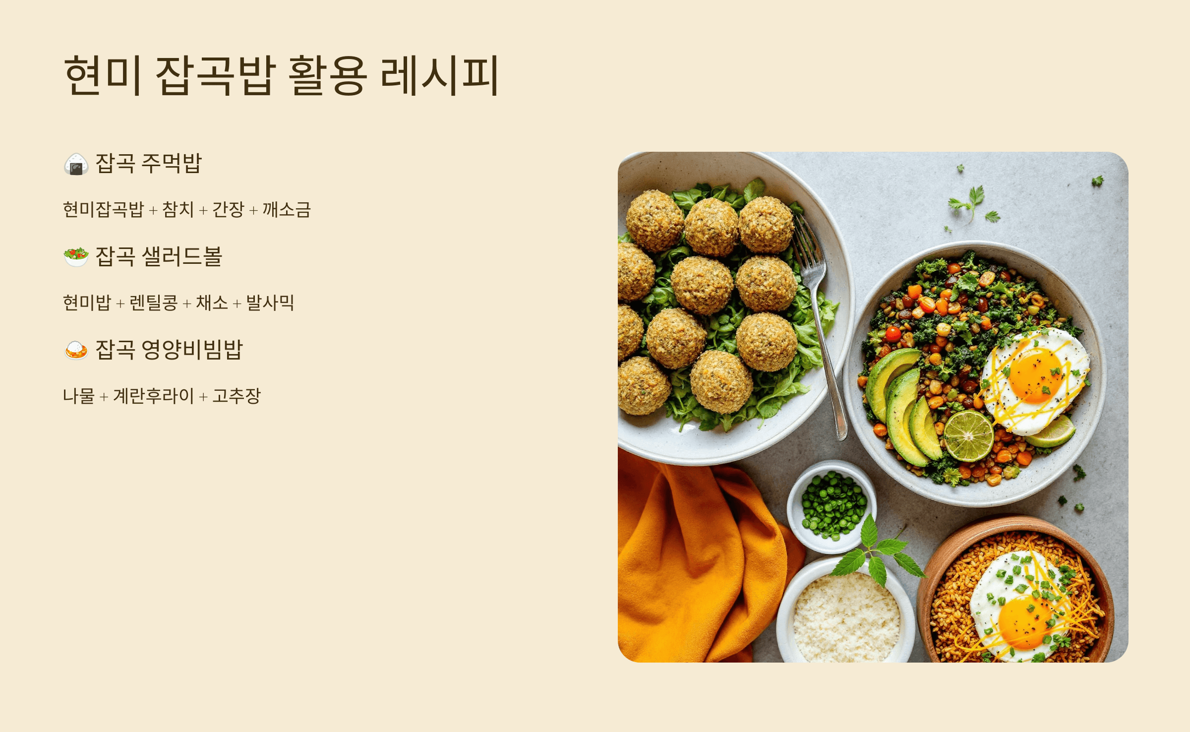 - 현미 잡곡밥 활용 레시피