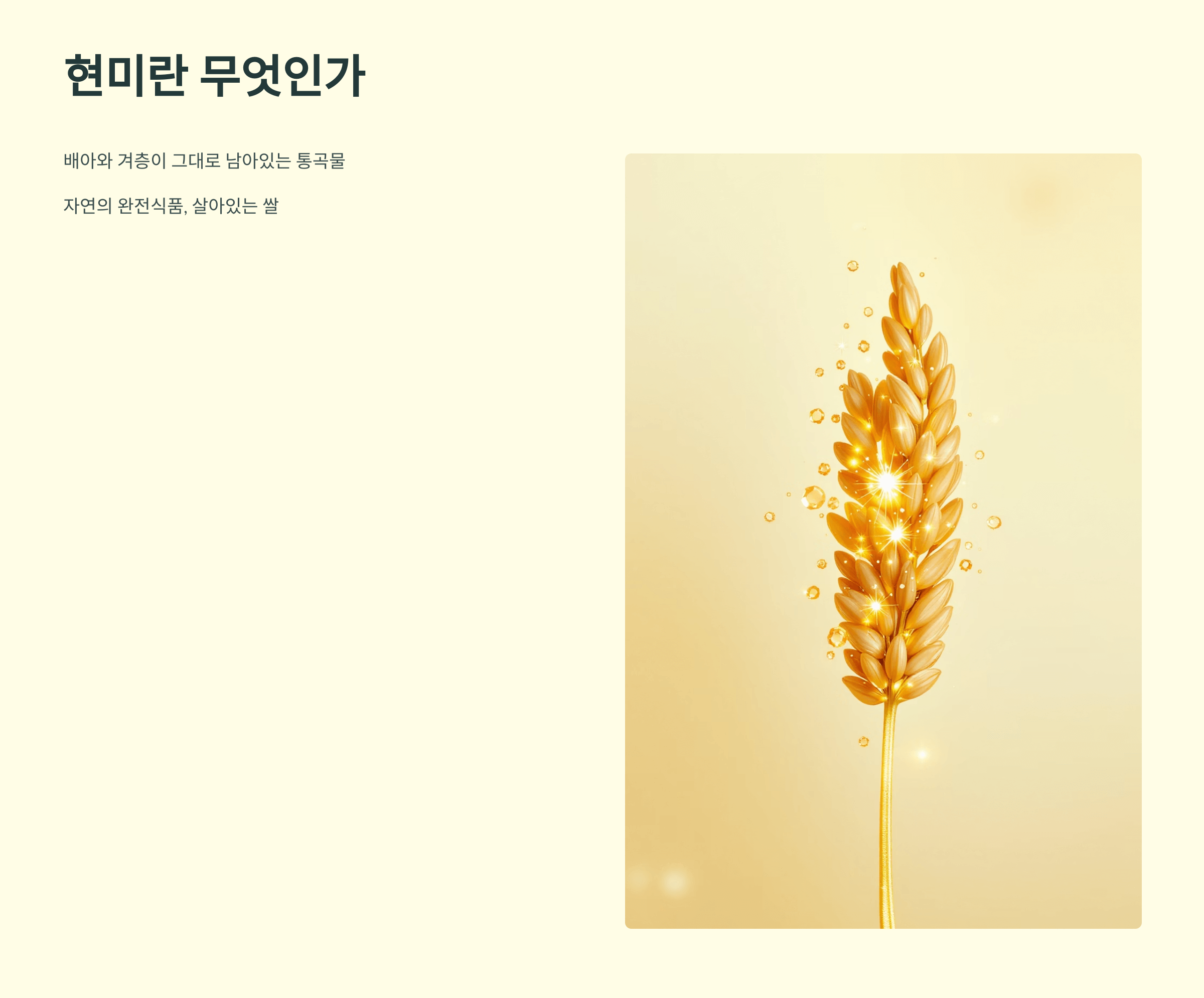 현미는 도정하지 않은 벼의 상태로, 겉껍질인 왕겨만 벗기고 배아와 겨층이 그대로 남아 있는 통곡물이에요.