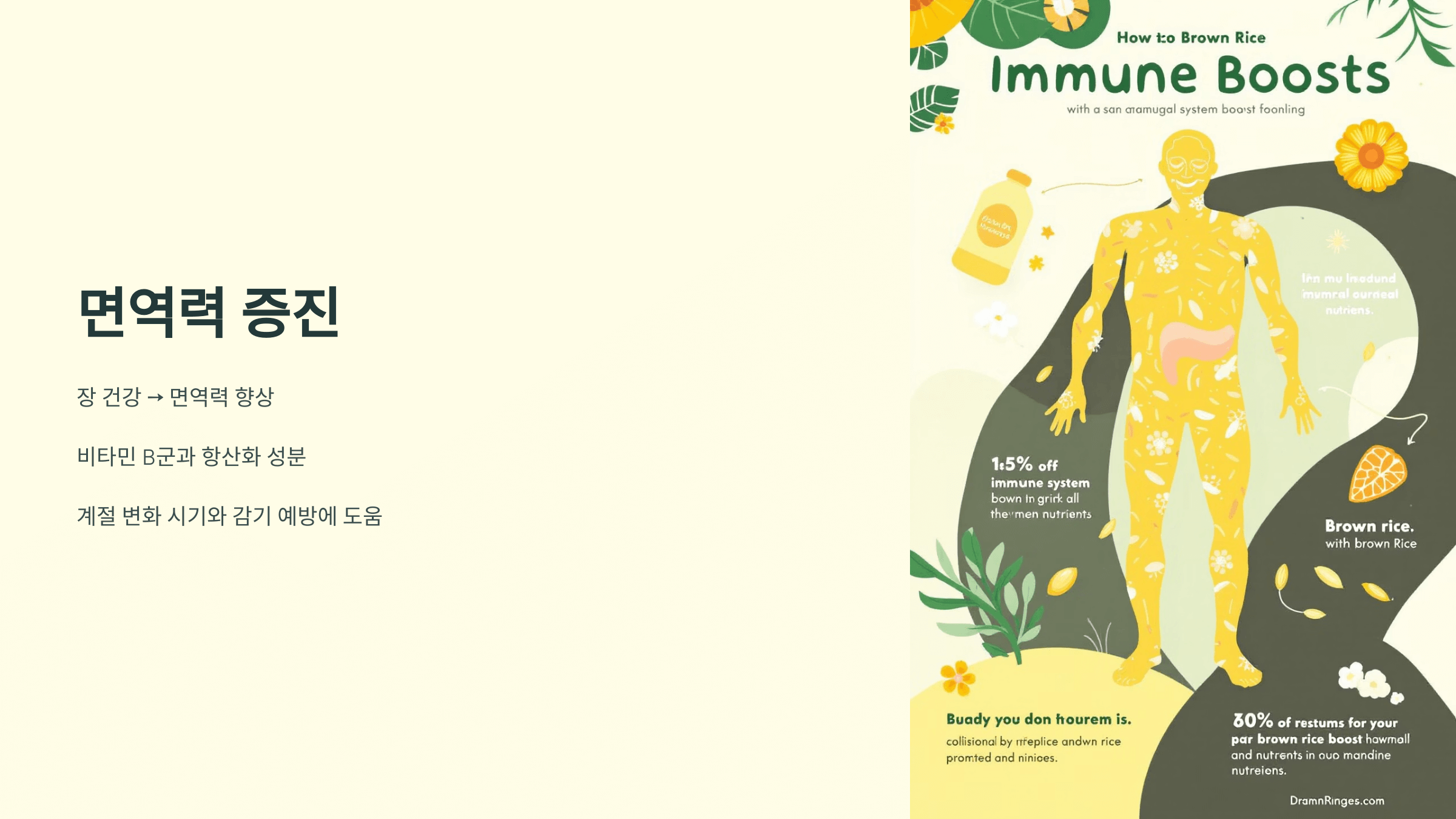 현미는 장 건강 → 면역력 향상으로 이어지는 식품이에요.