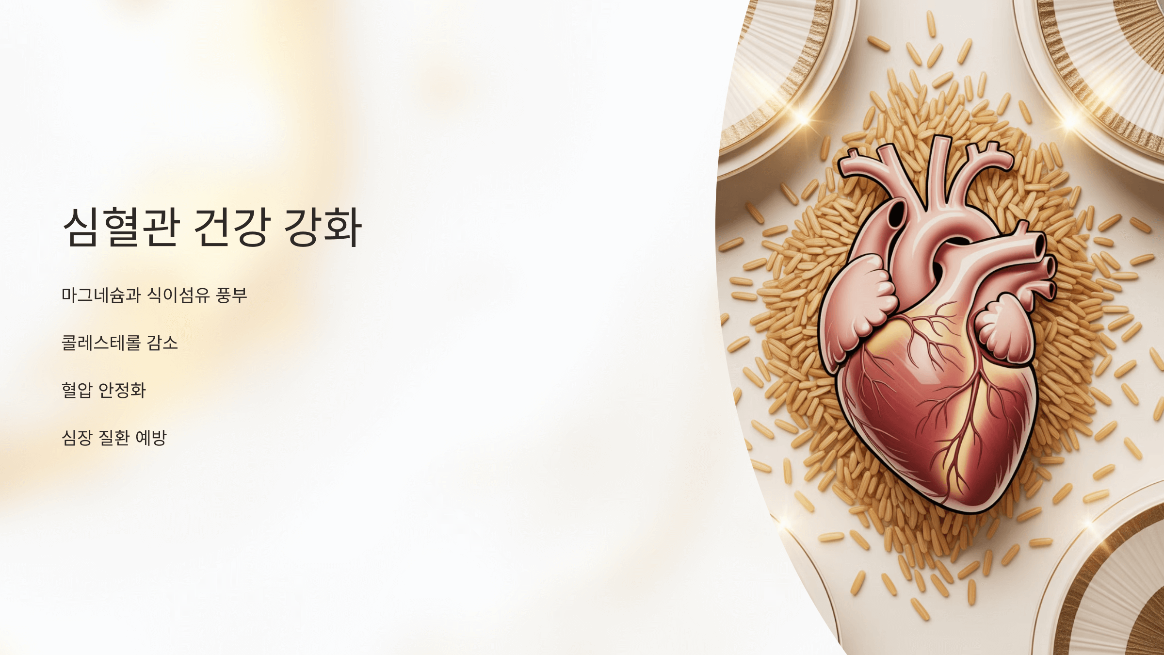 혈압을 안정시키며 심장 질환 예방에도 도움을 줘요.
