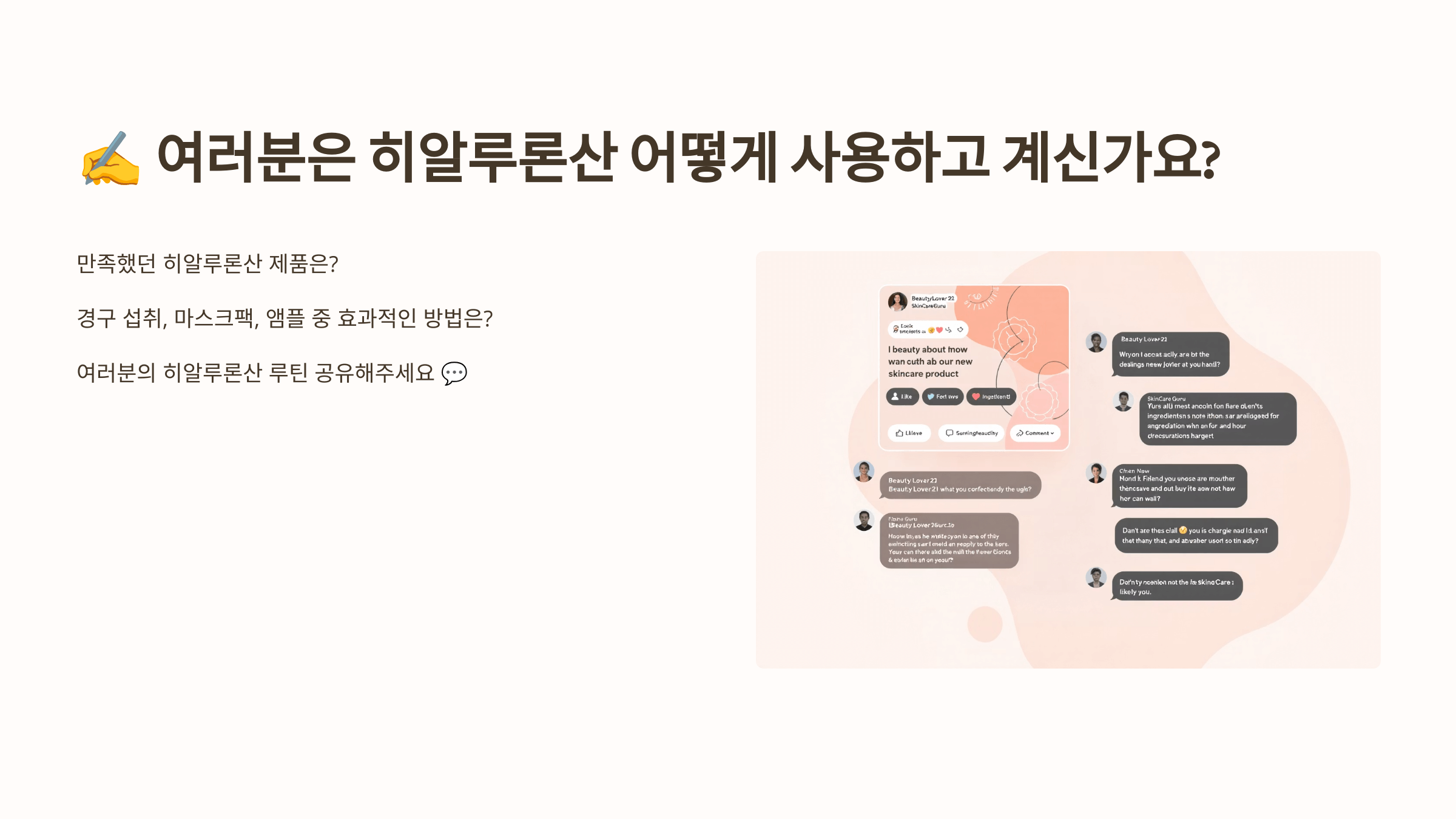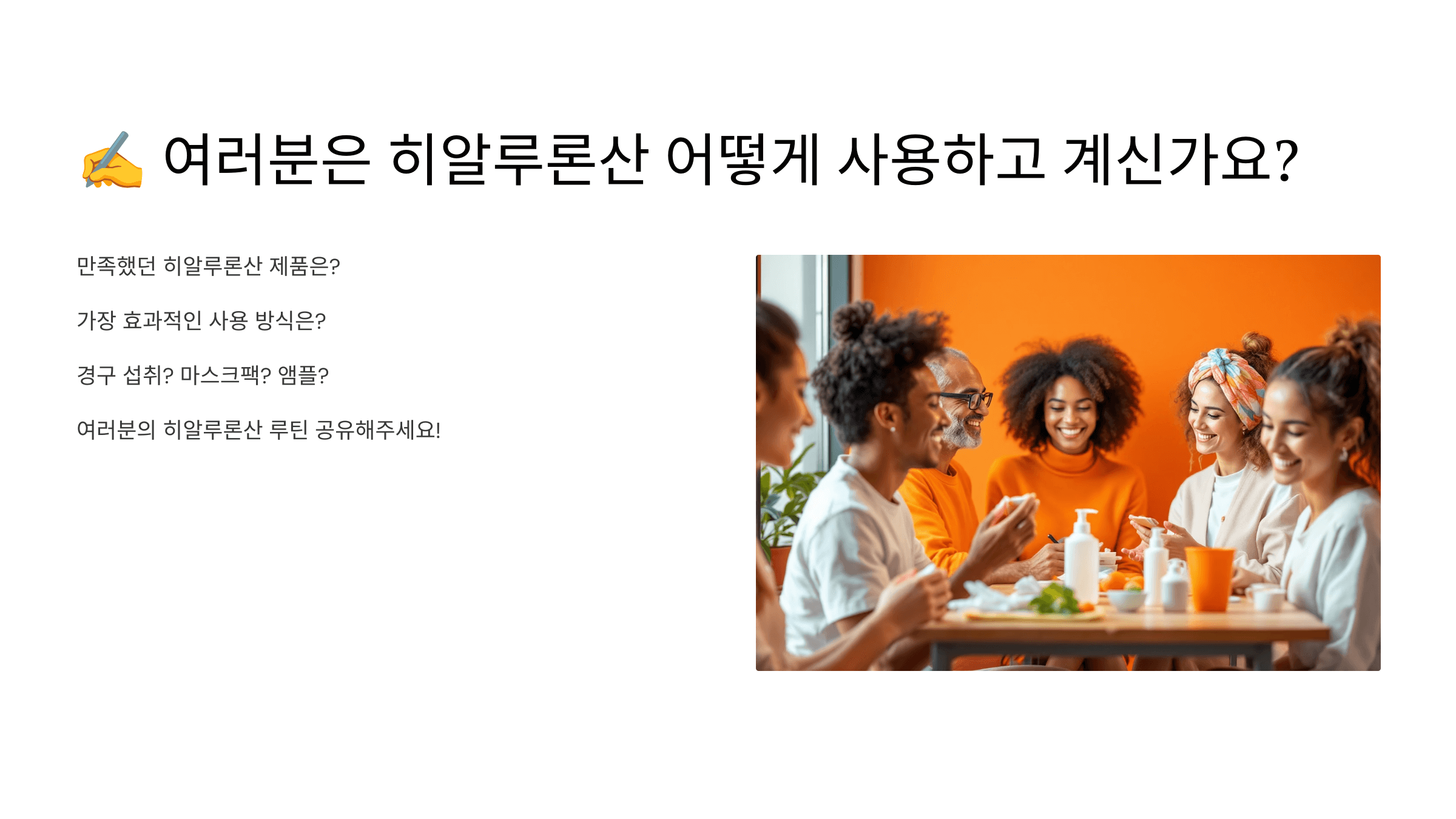 댓글로 여러분의 히알루론산 루틴 공유해 주세요 💬