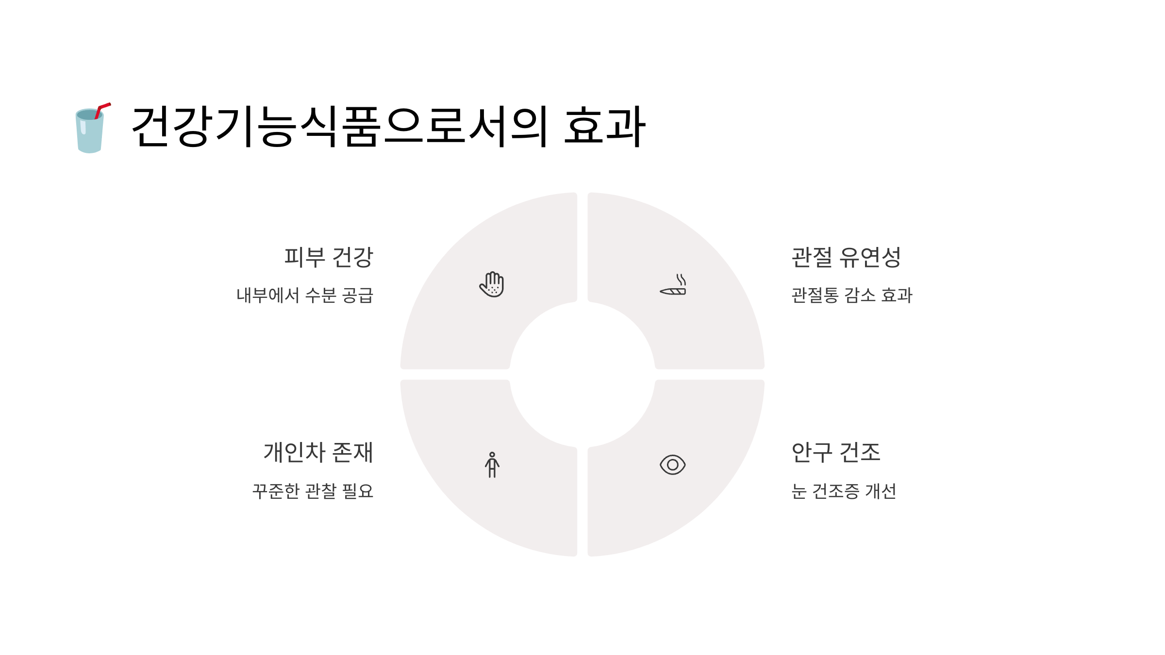 일부 연구에선 관절통 감소나 안구건조 개선에도 효과가 있다고 보고되고 있더라고요.