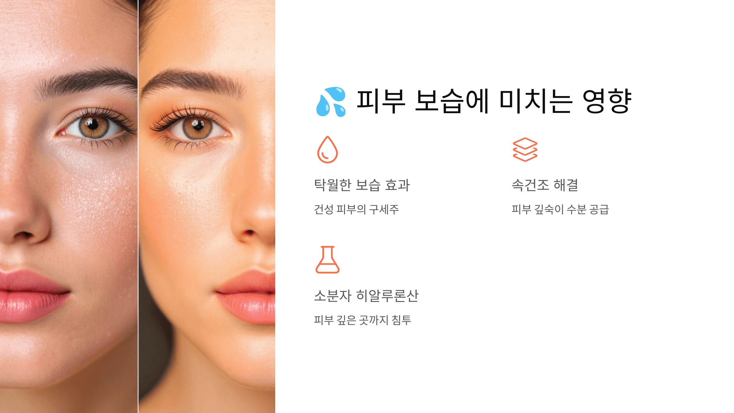 히알루론산은 무엇보다도 보습 효과가 탁월해요.